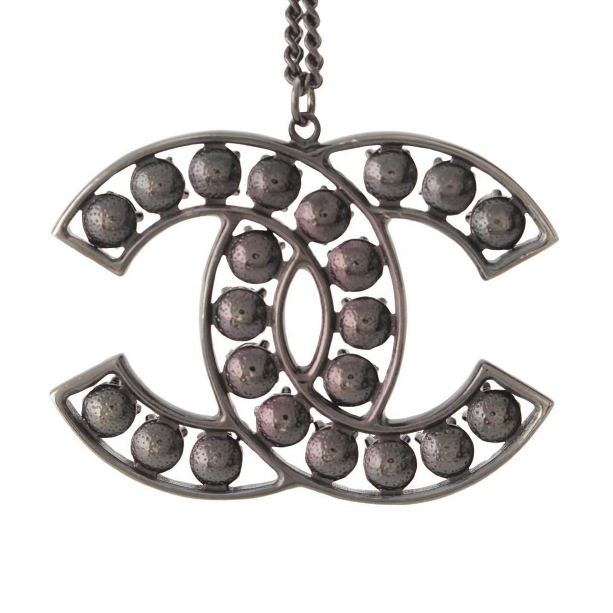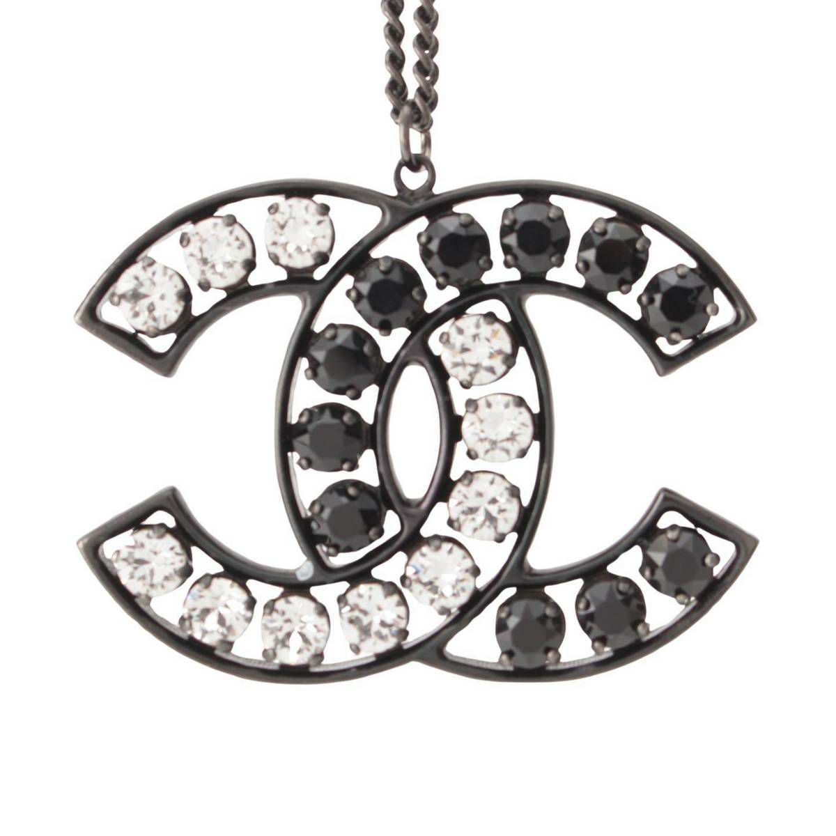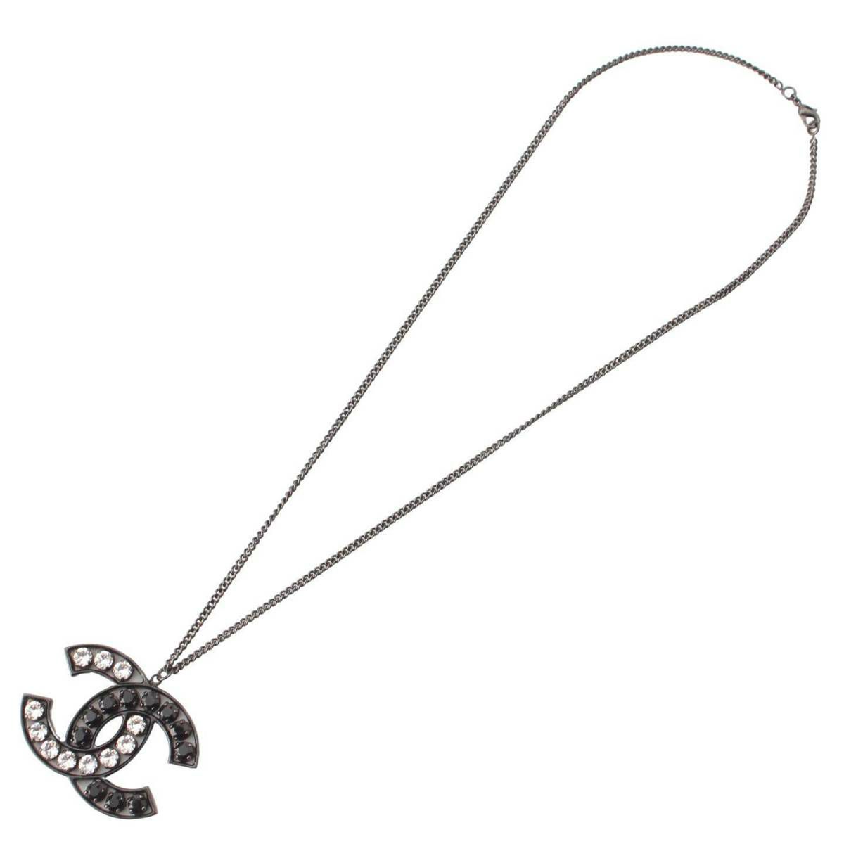 シャネル B14 ココマーク ラインストーン メタル ネックレス ブラック×クリア