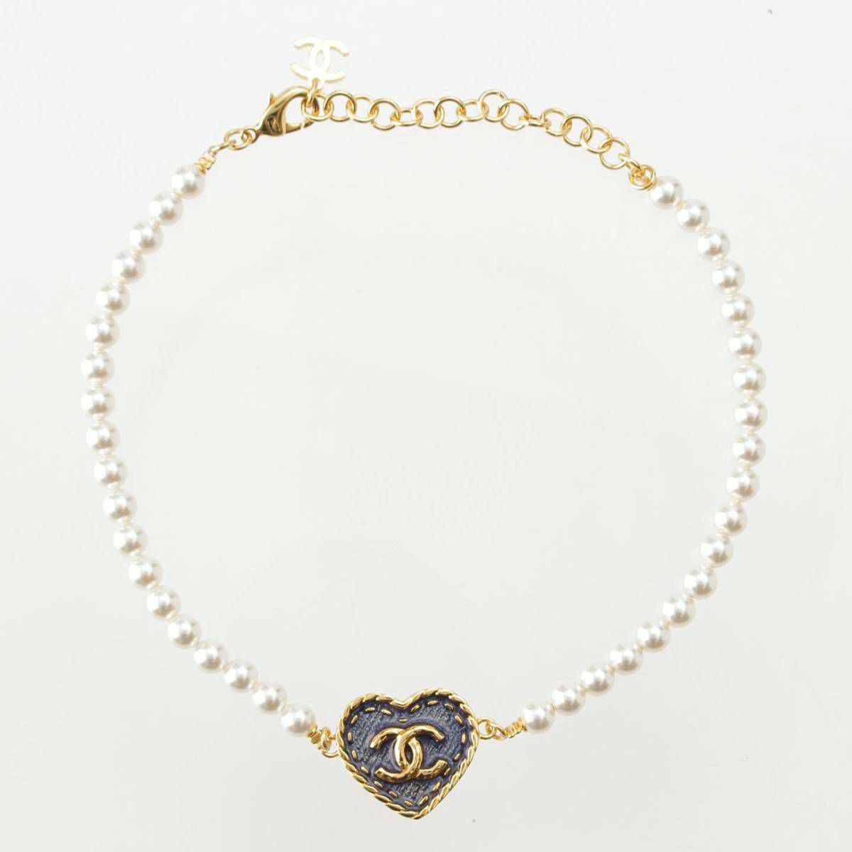 シャネル Chanel I24P パール ハート ネックレス エナメル ココマーク ABC711 インディゴ ゴールド