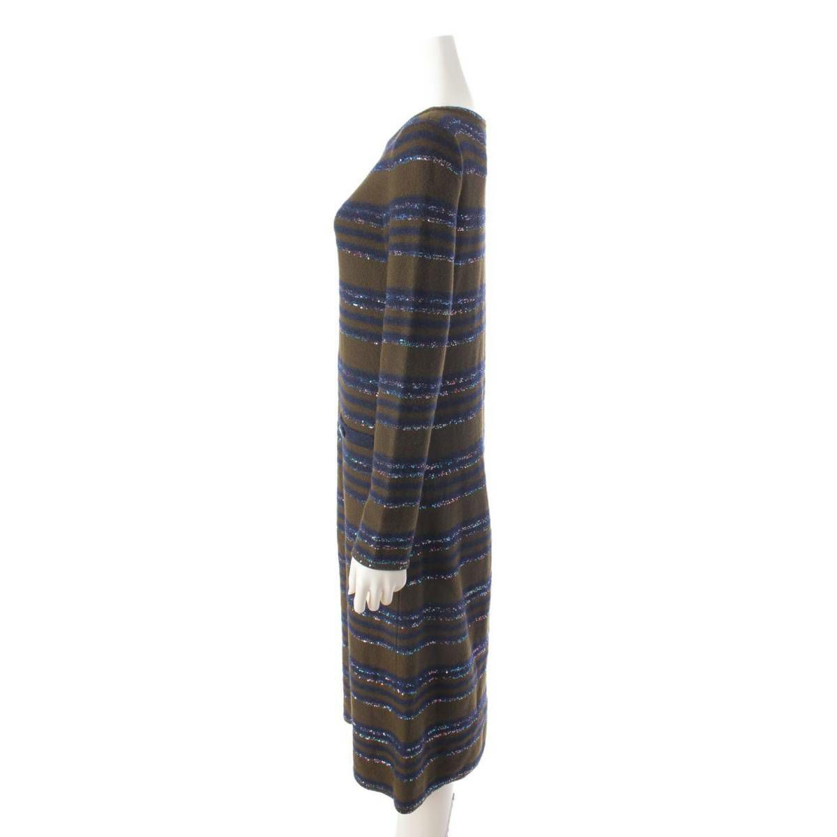シャネル カシミヤ スパンコール 長袖 ニットワンピース P62936 カーキ×ネイビー 36