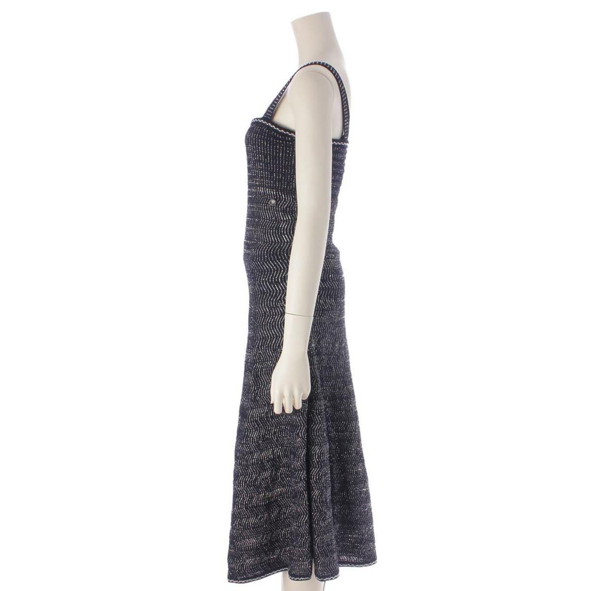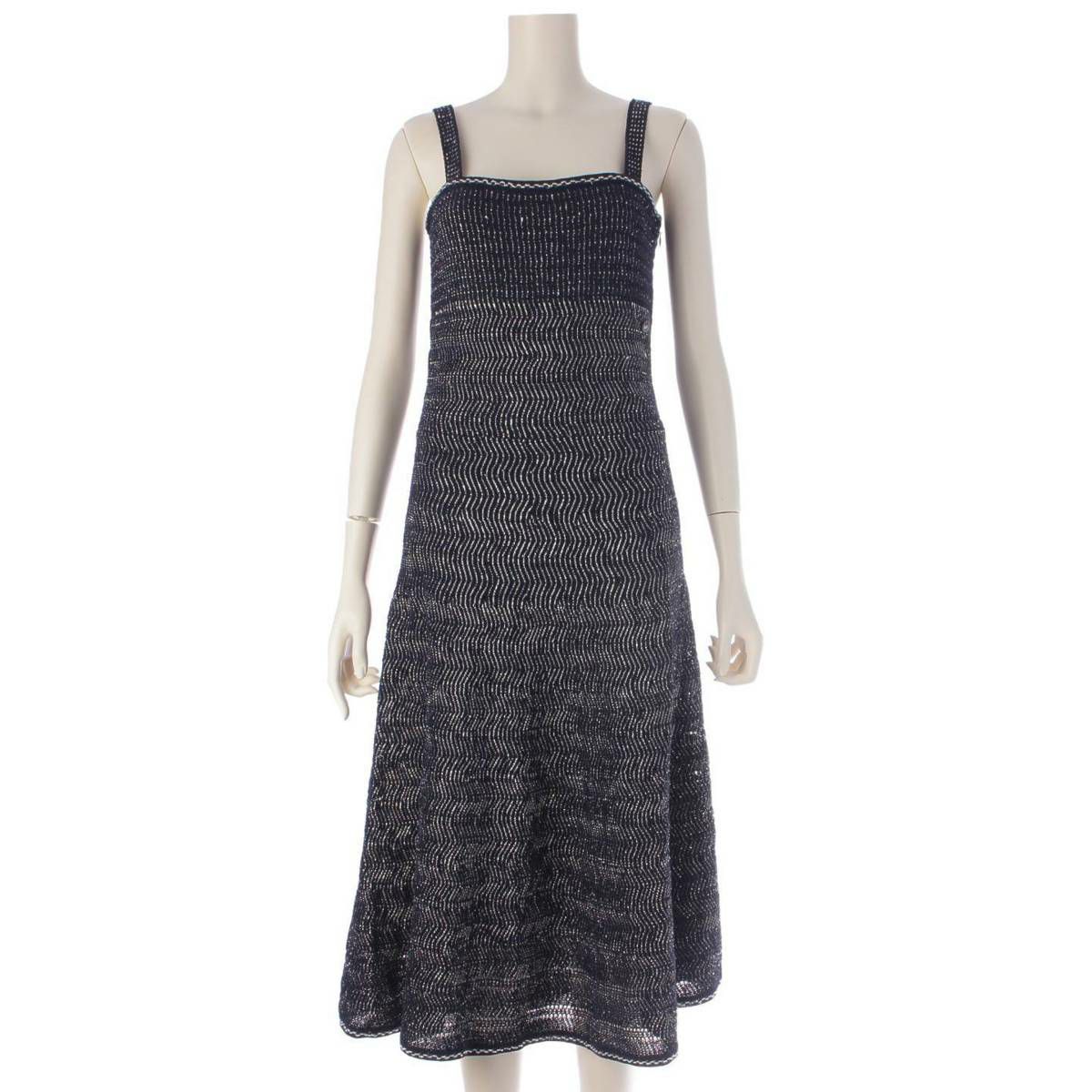 シャネル Chanel ココマーク ツイード ノースリーブ ワンピース ドレス P58602 ネイビー 38