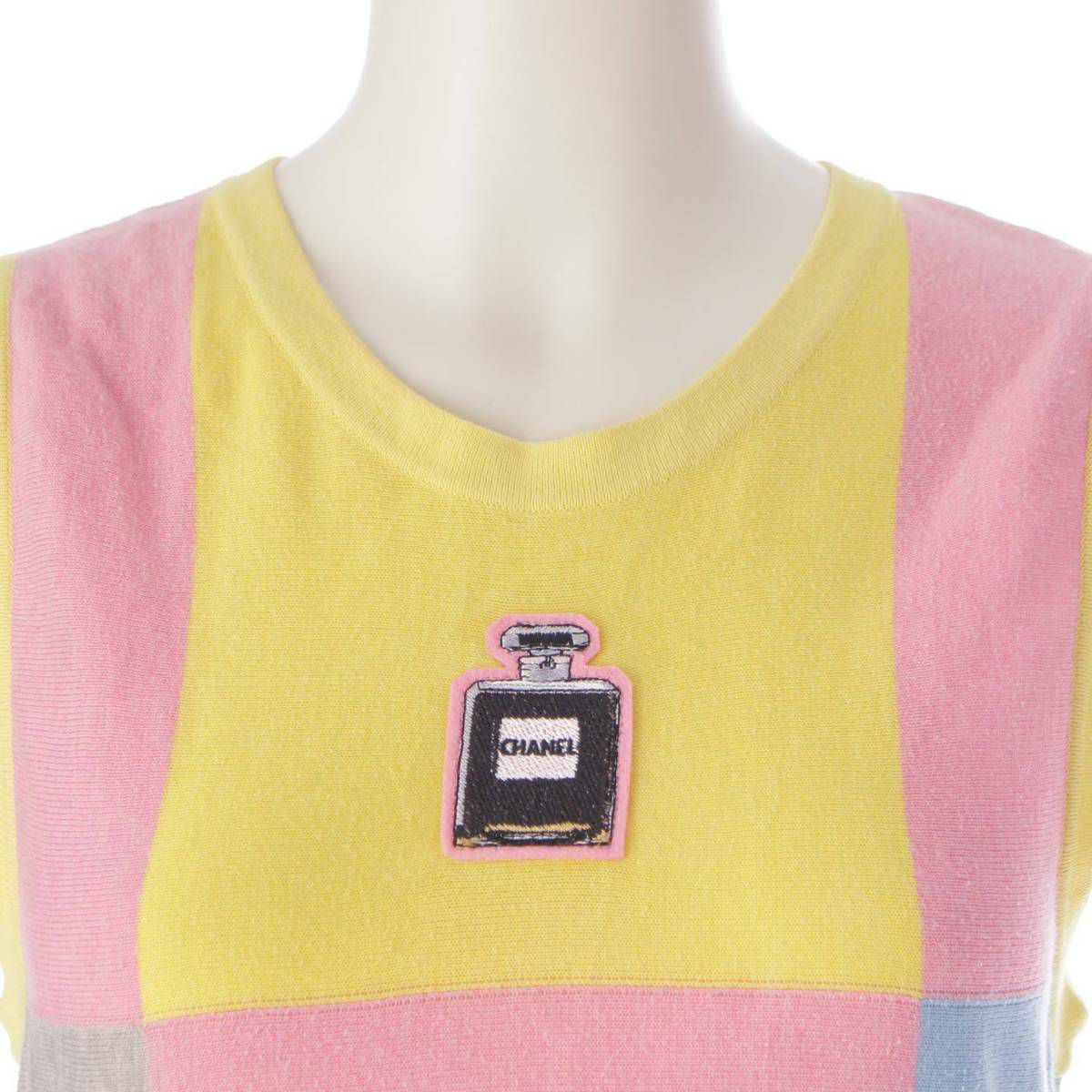 シャネル Chanel 08P 香水ボトル ワッペン ノースリーブ タンクトップ ワンピース マルチカラー 36