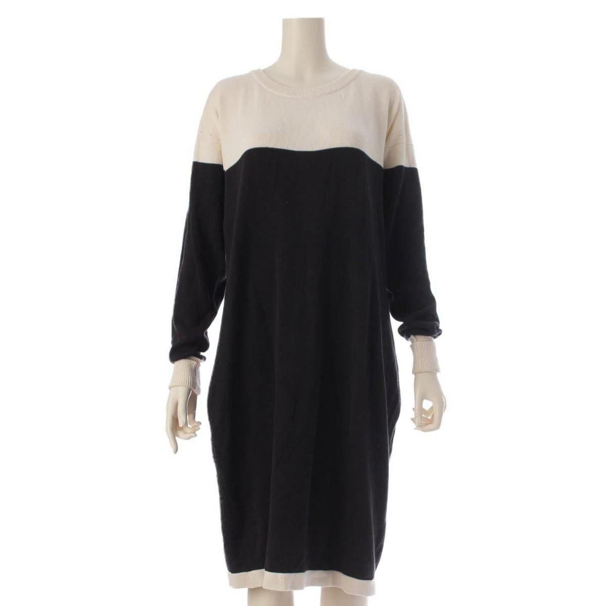 シャネル コットン ニット ワンピース トップス バイカラー ブラック×ホワイト