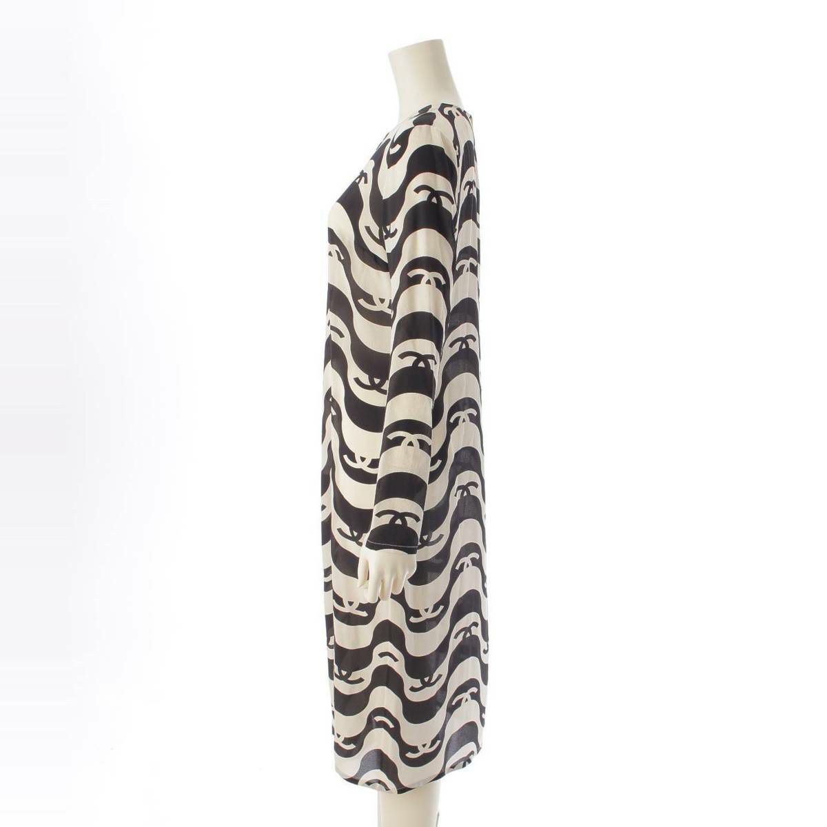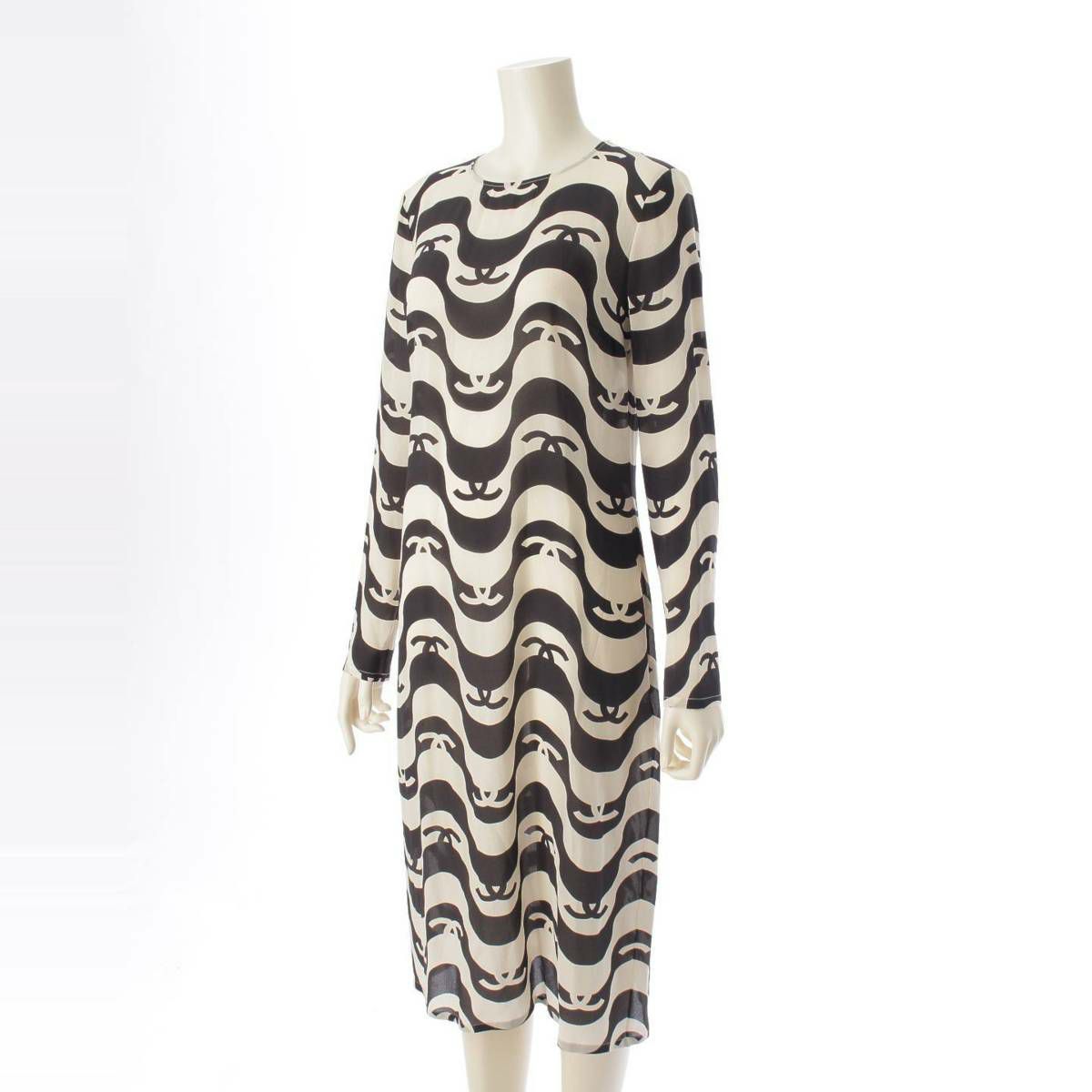 シャネル シルククレープ ココマーク ドレス ワンピース P70216 ブラック×エクリュ 38