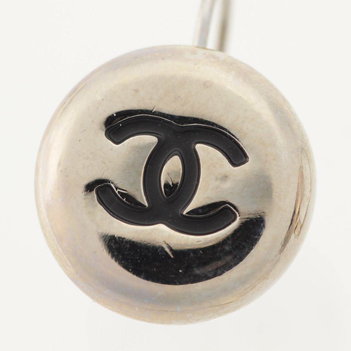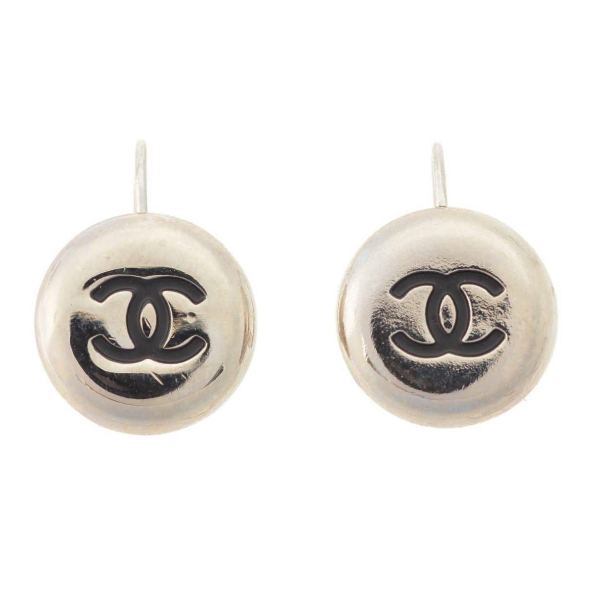 シャネル Chanel 97A ヴィンテージ ココマーク ラウンド ピアス シルバー×ブラック