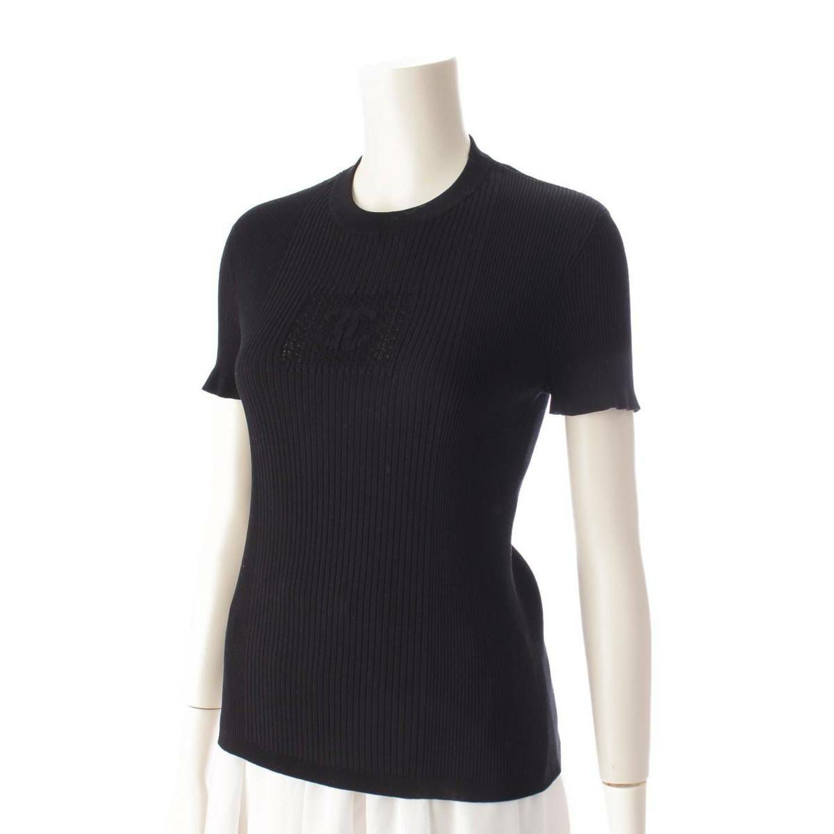 シャネル Chanel CCロゴ ココマーク 半袖 コットン リブニット トップス P76440 ブラック 38