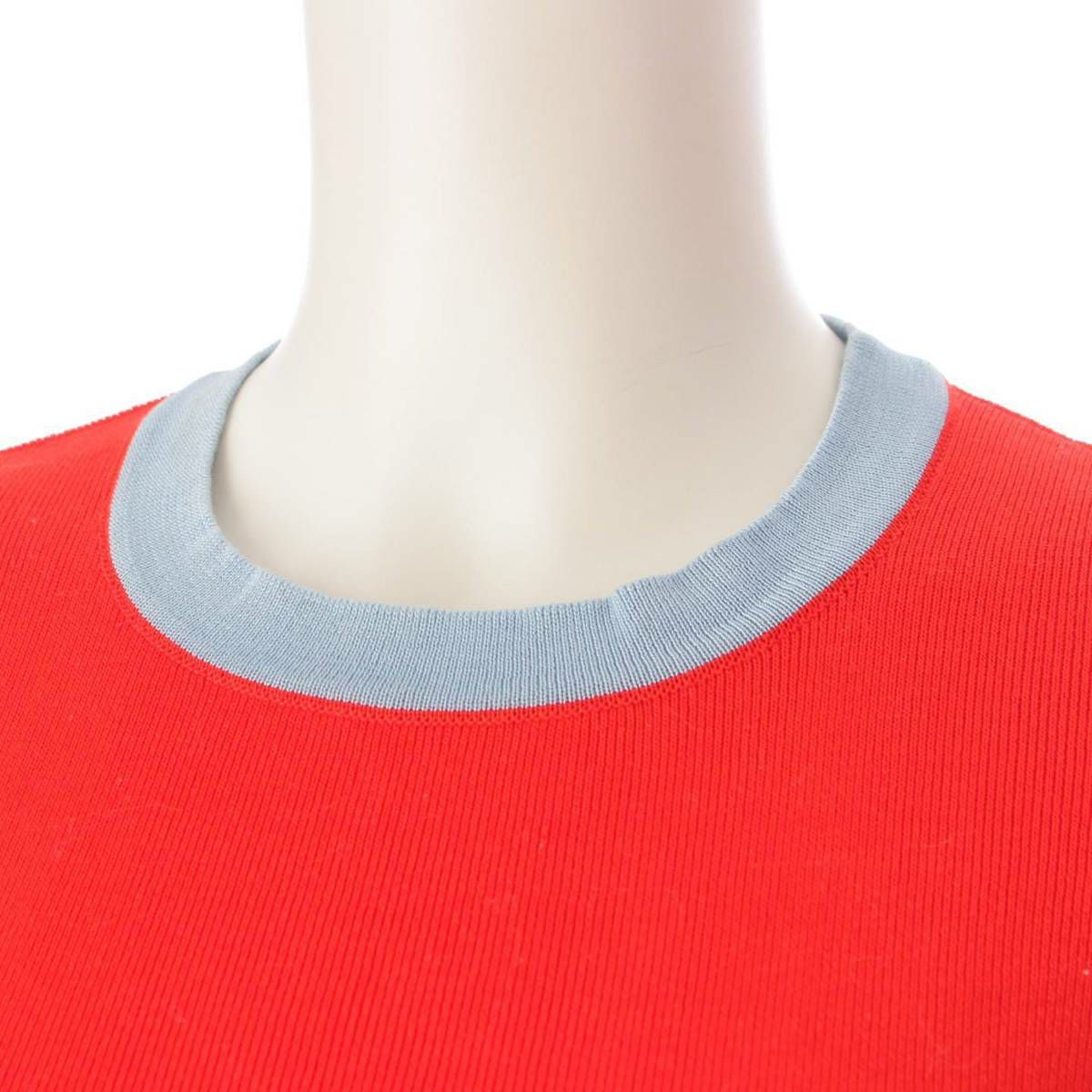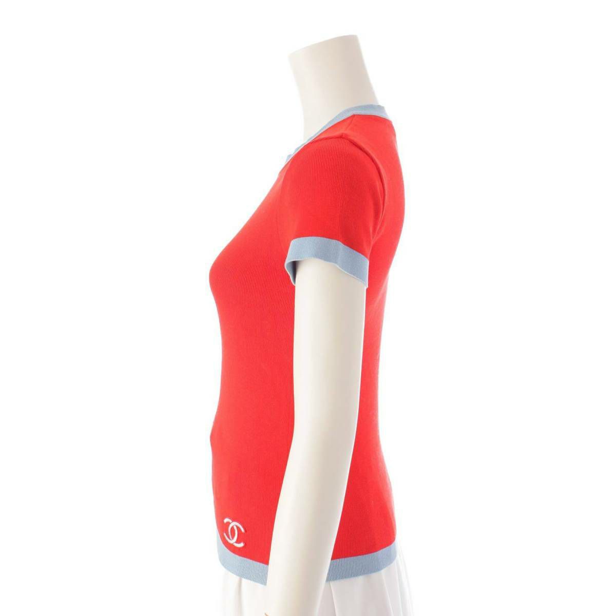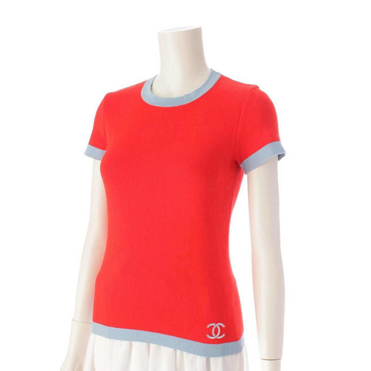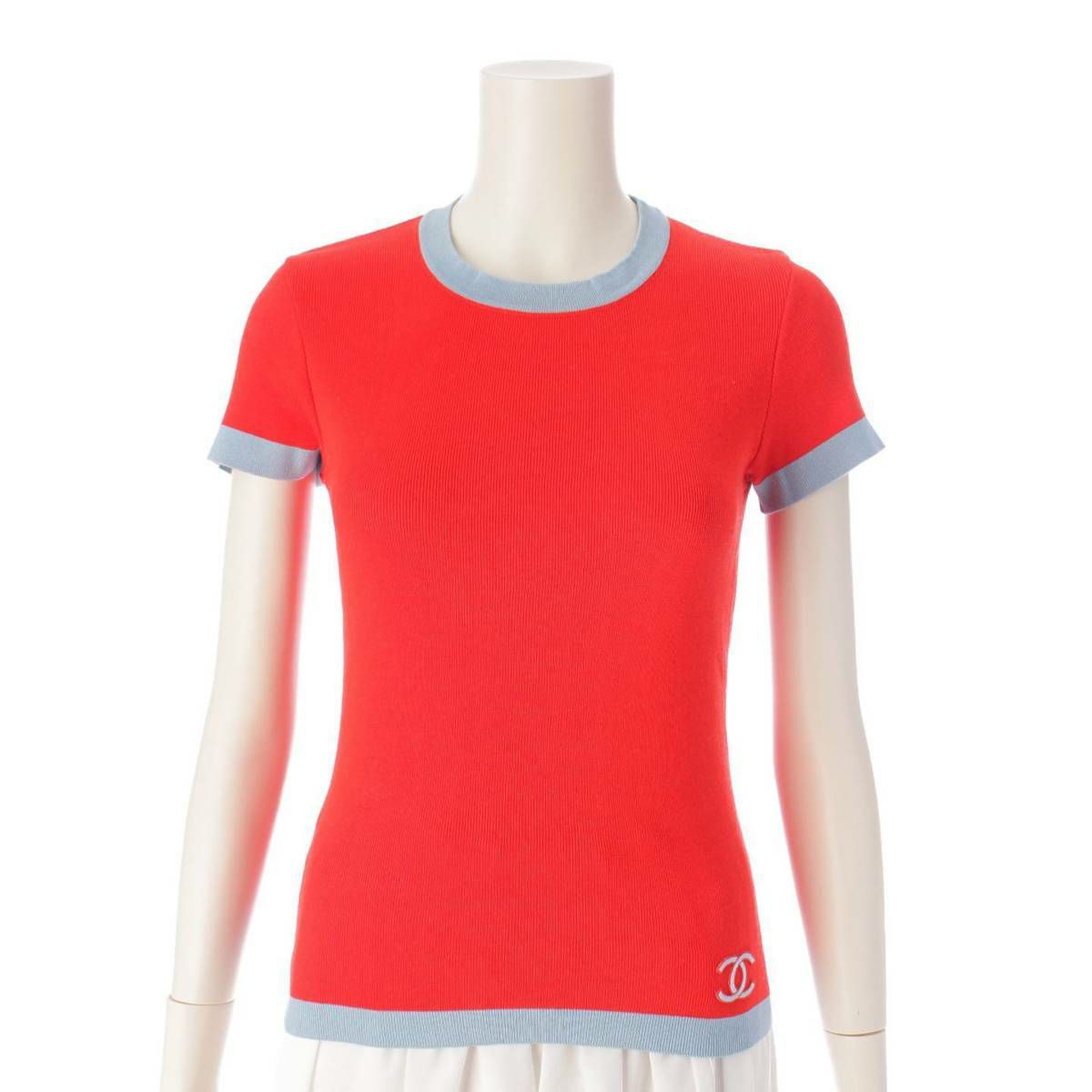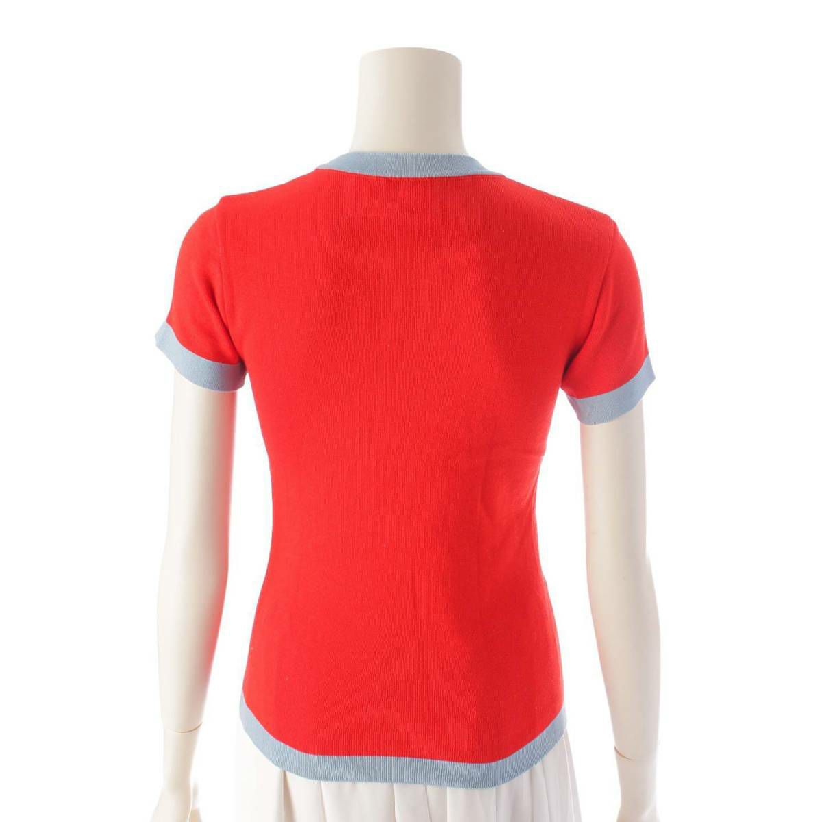 シャネル Chanel 02S ココマーク 半袖 ニット セーター トップス P19521 レッド×ブルー 38