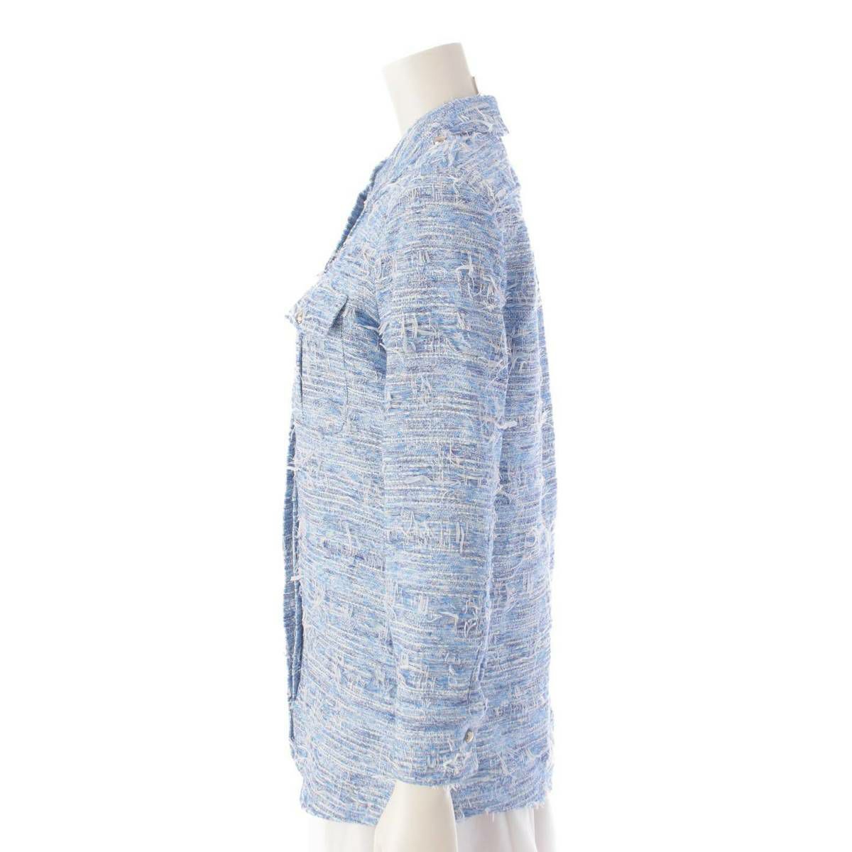 シャネル Chanel ツイード シャツ ジャケット トップス P90977 ブルー 34