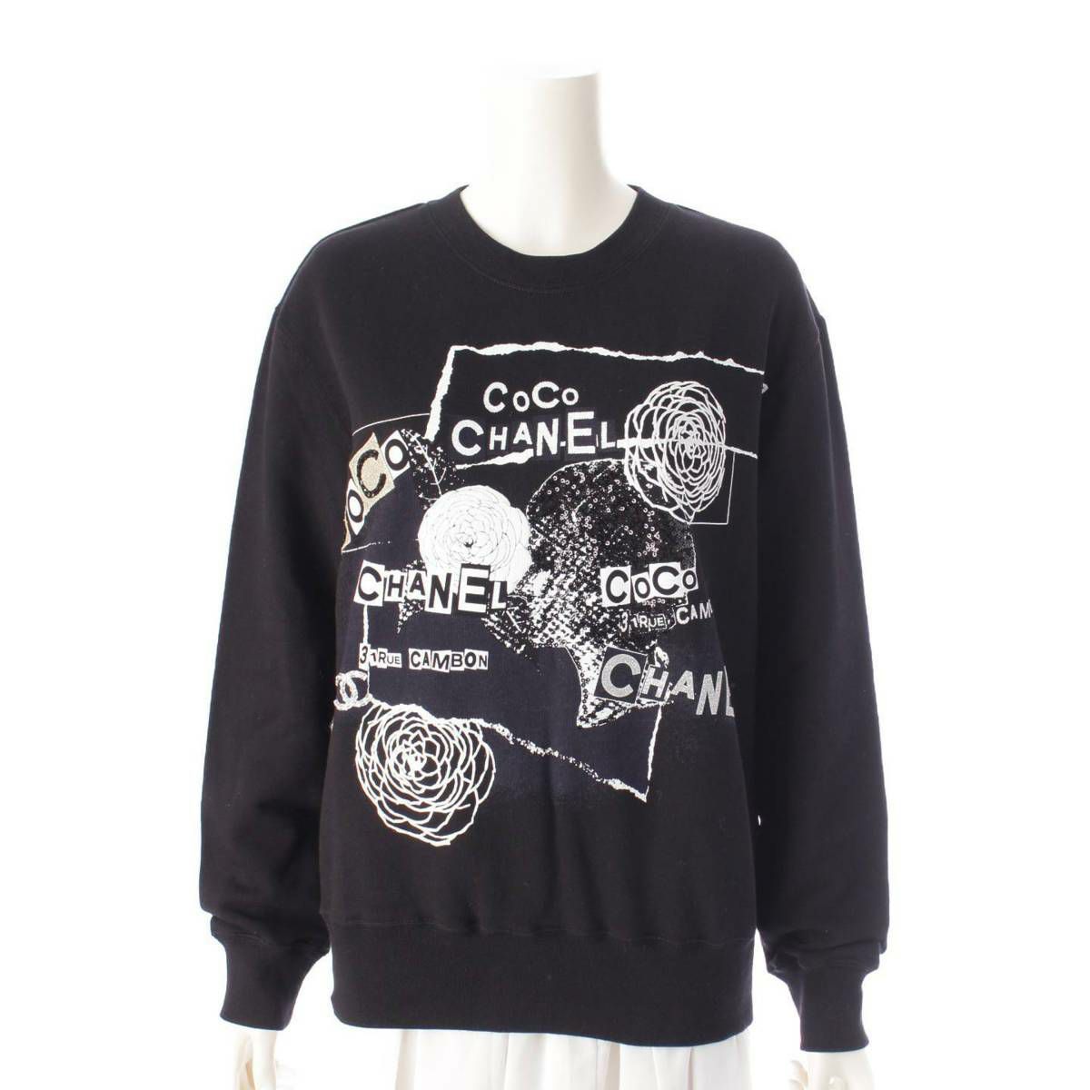 シャネル 20P カメリア スパンコール スウェットシャツ トレーナー P63298 ブラック S