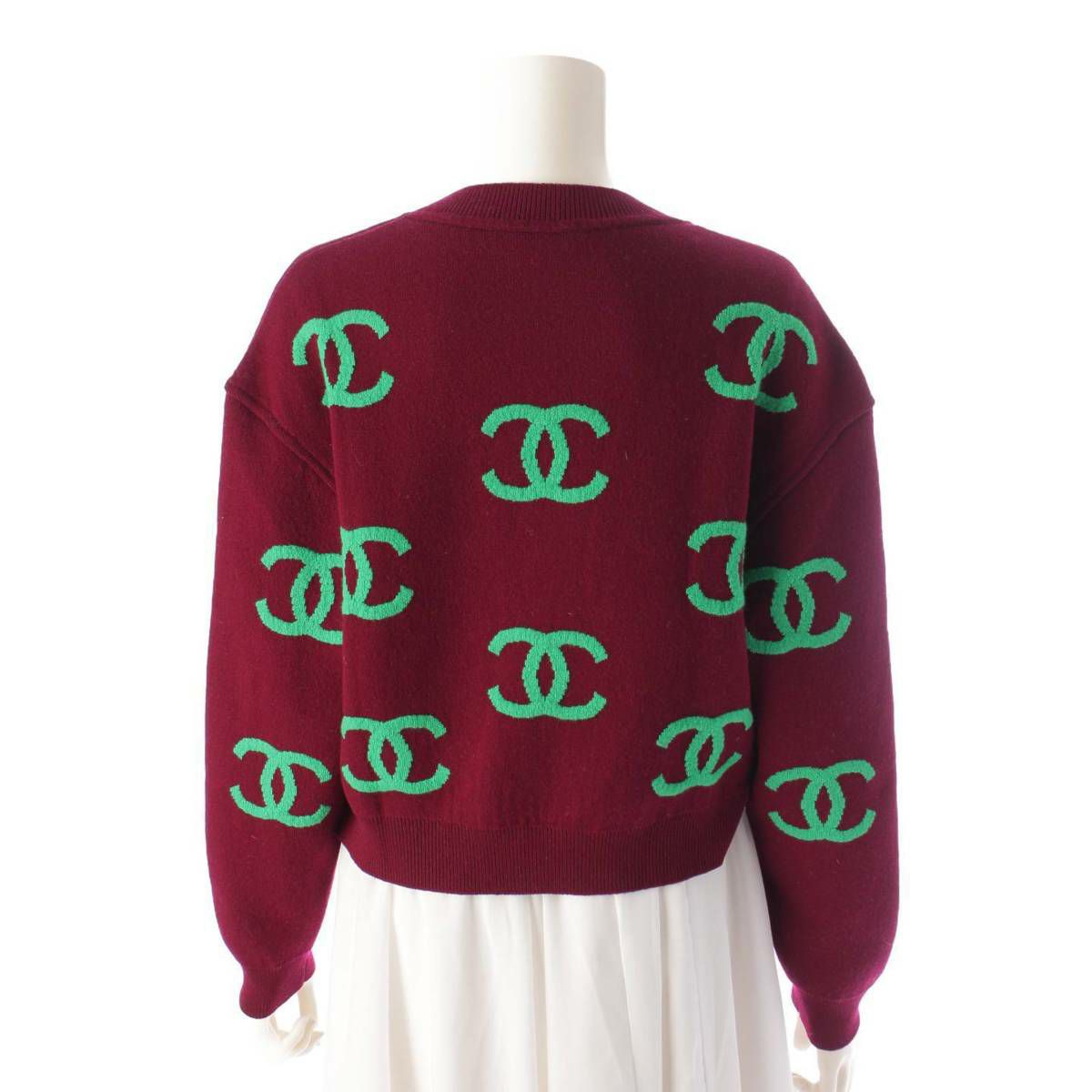 シャネル Chanel ココマーク ジャガード カシミヤ ニット セーター P70525 ボルドー×グリーン 36