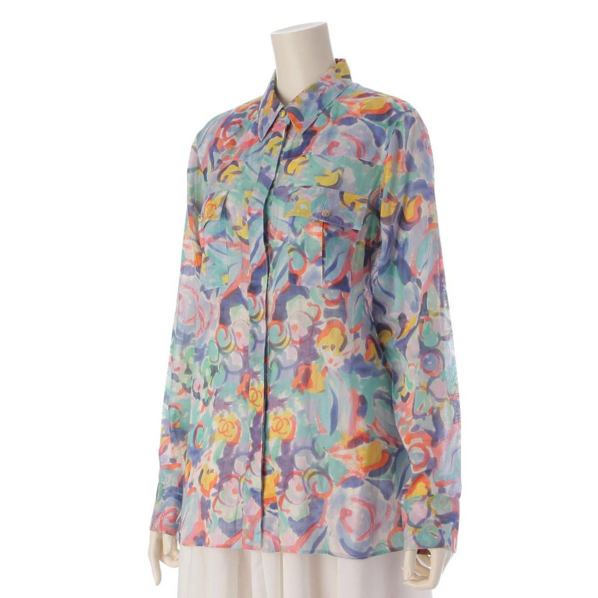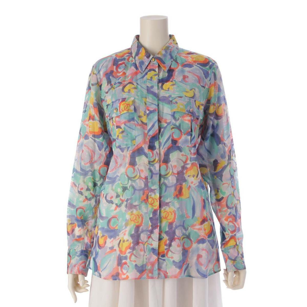シャネル Chanel ココマーク 水彩柄 グラフィック 長袖 シャツ P40015 マルチカラー 38