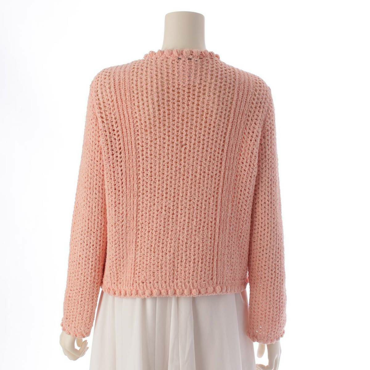 シャネル 17C ロゴボタン コットン 透かし編みニット カーディガン トップス P55741 ピンク 40