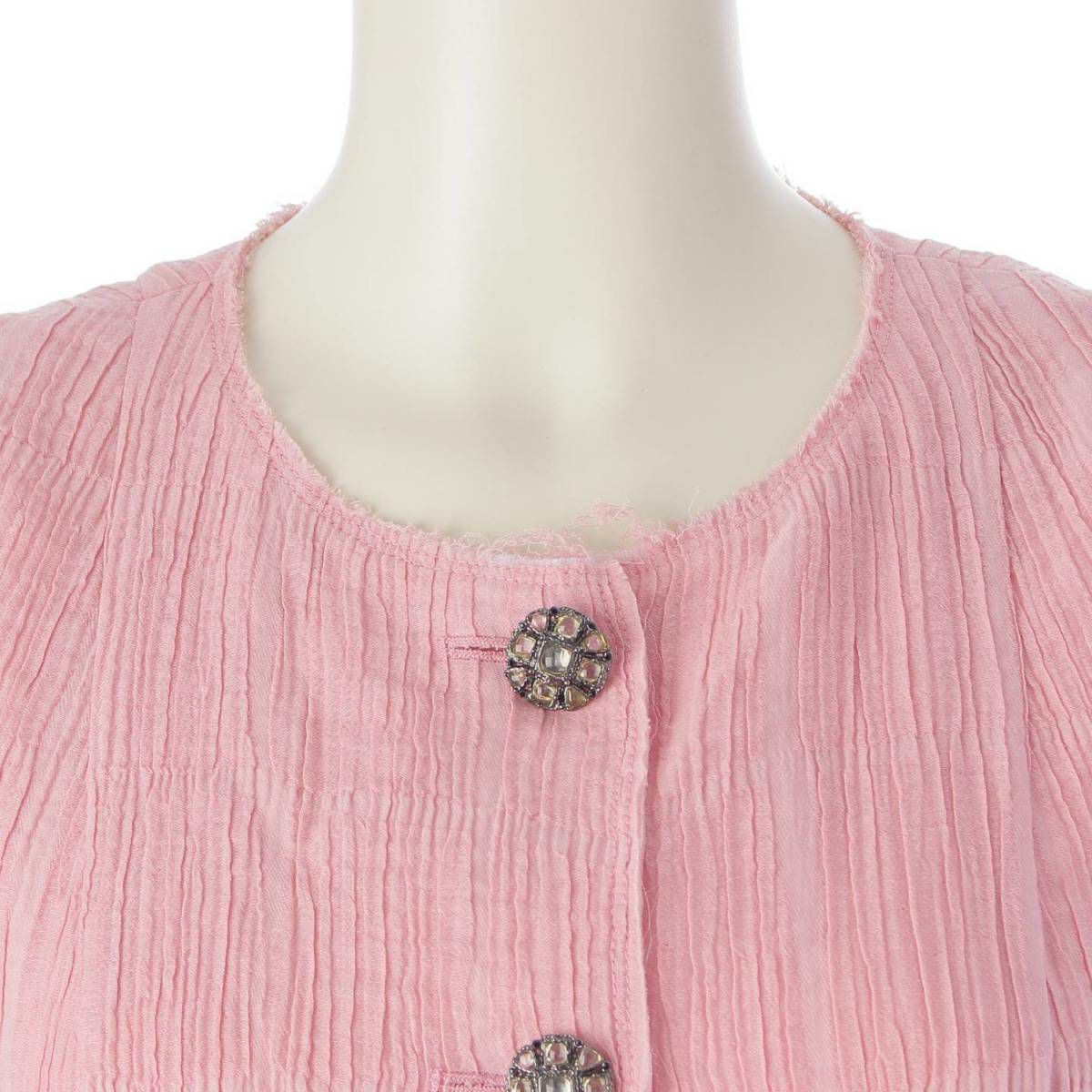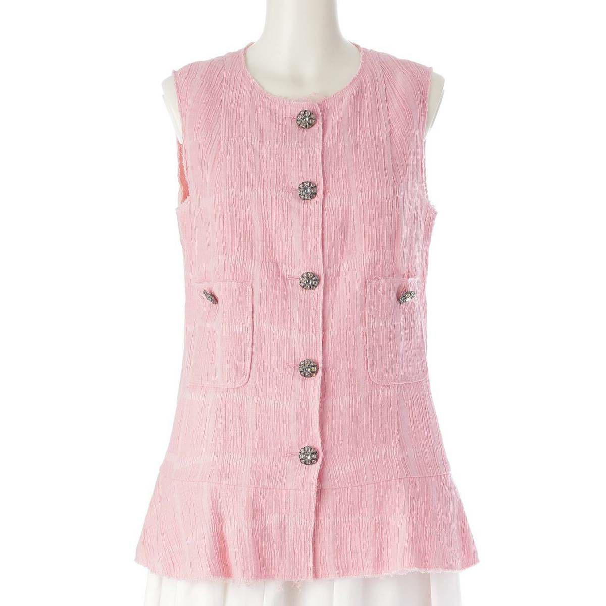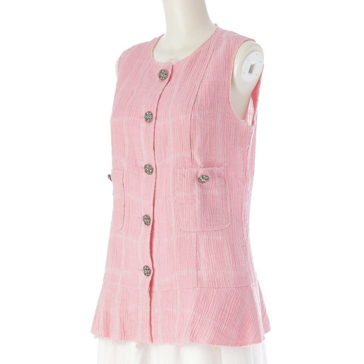 シャネル Chanel ココマーク ビジューボタン コットン ノースリーブ シャツ ブラウス P43051 ピンク 38