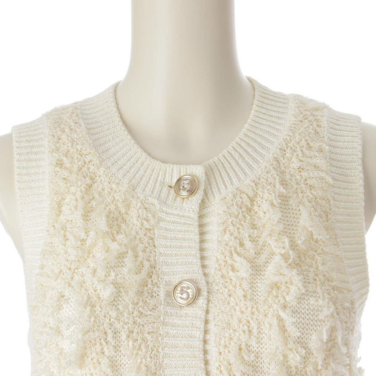 シャネル No5ボタン コットン ベスト ジレ ノースリーブ トップス P70821 ホワイト 34
