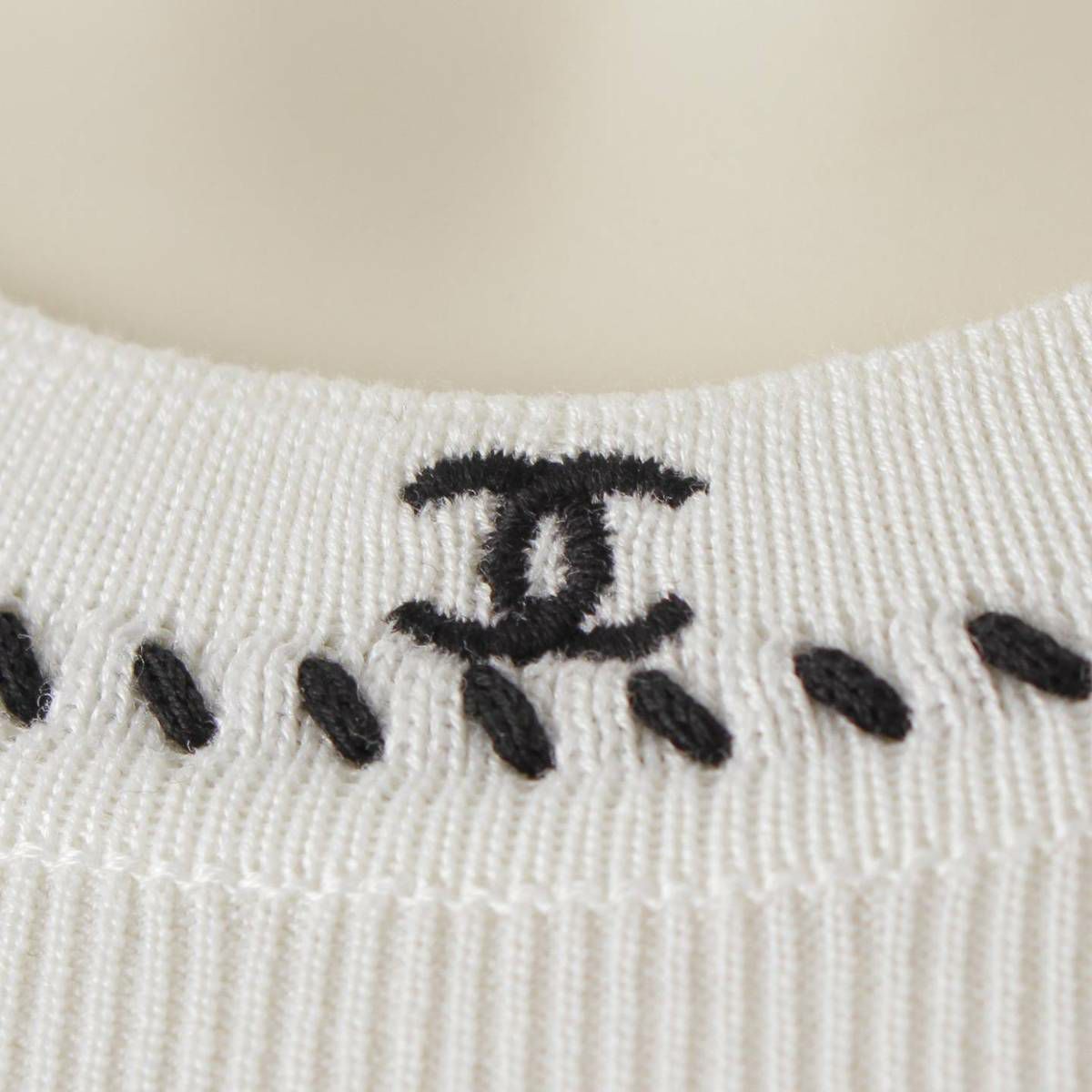 シャネル 96P ココマーク刺繍 コットン 半袖 ニット トップス チビTシャツ P06574 ホワイト 42