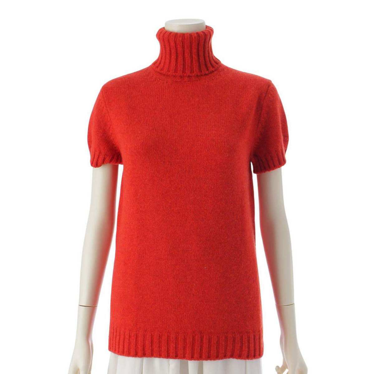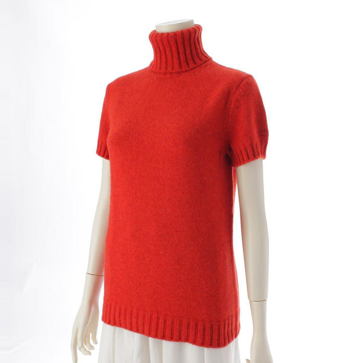 シャネル Chanel 07A ココマーク ウール カシミヤ ボトルネック ニット トップス P31739 レッド 38