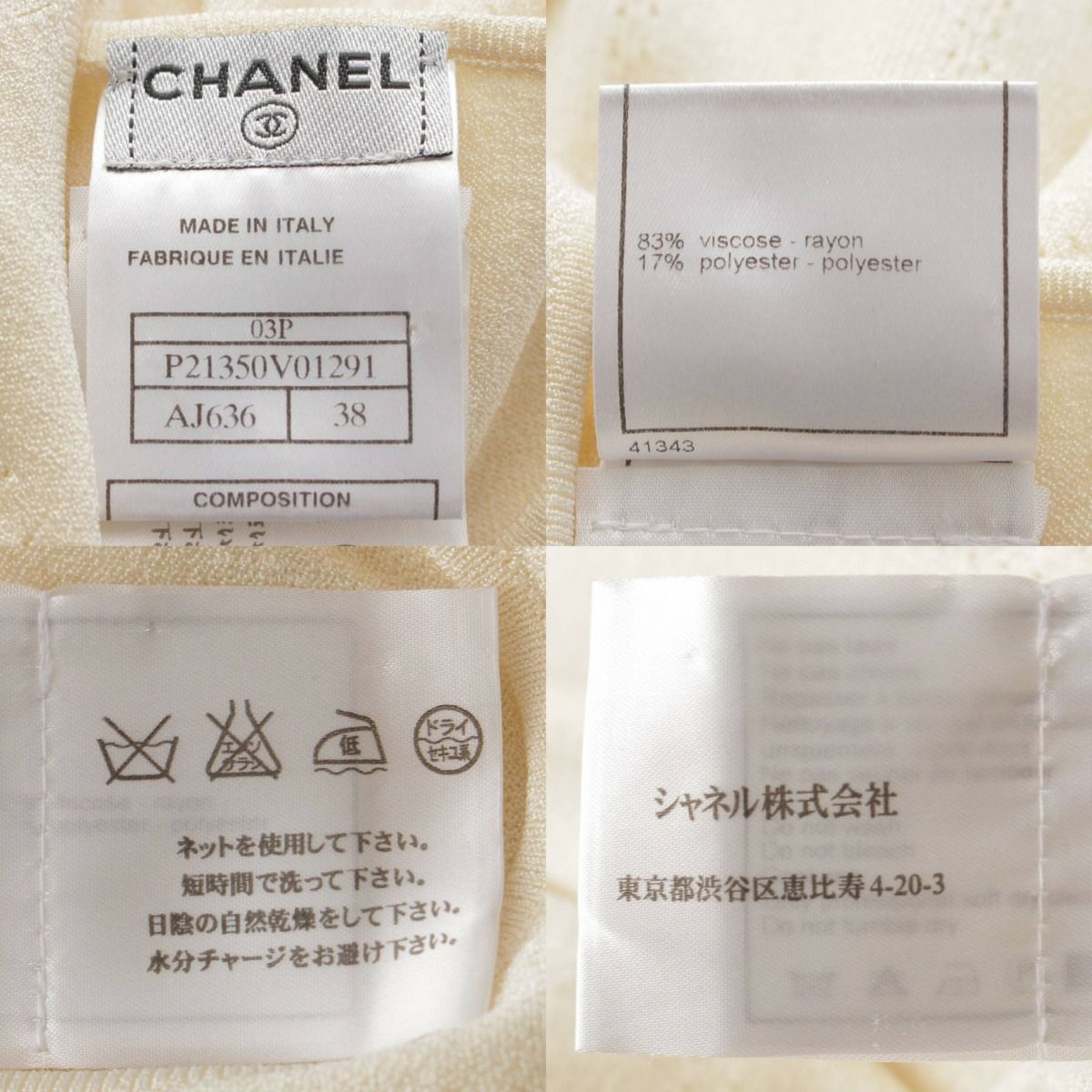 シャネル 03P 半袖 ニット カットソー トップス P21350 アイボリー 38