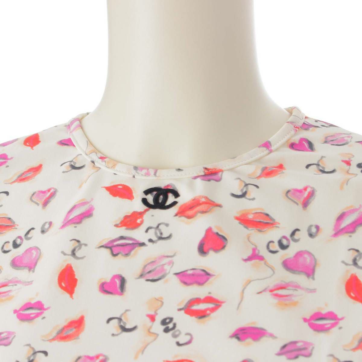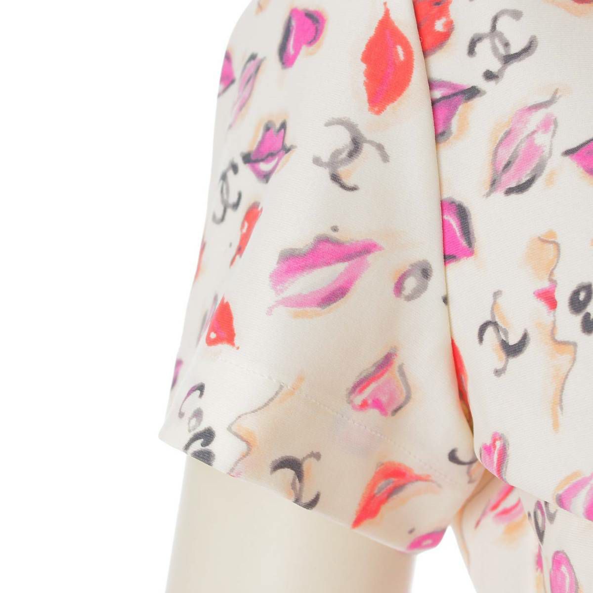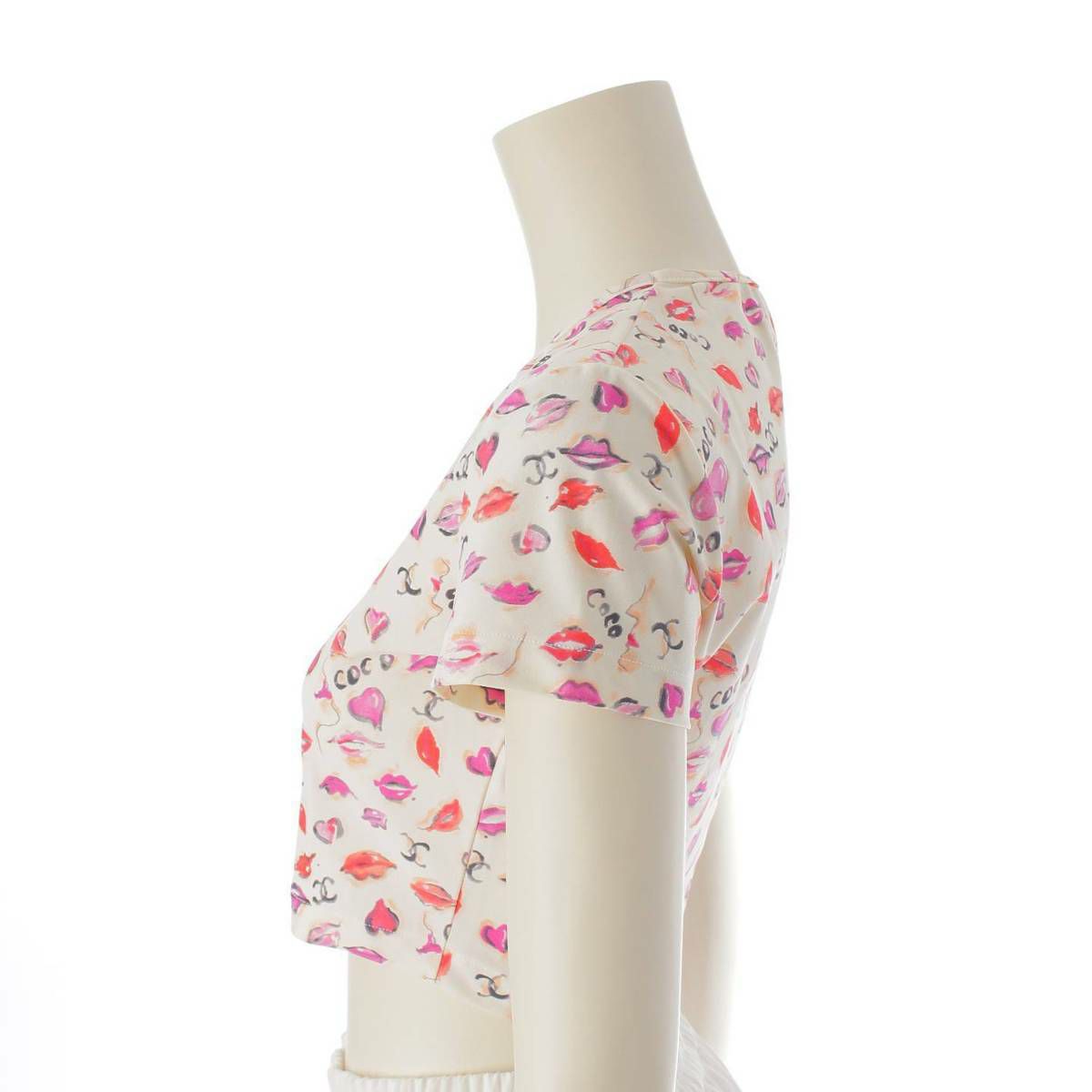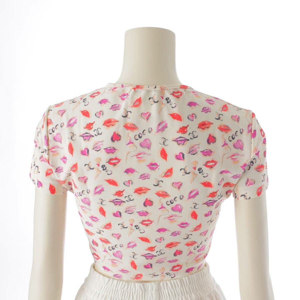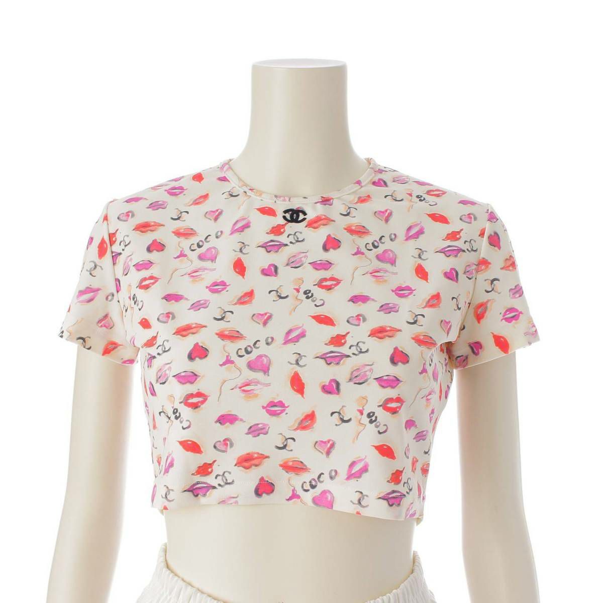 シャネル P95 ココマーク リップ柄 半袖 マイヨ素材 クロップド Tシャツ PO5010 ホワイト 42