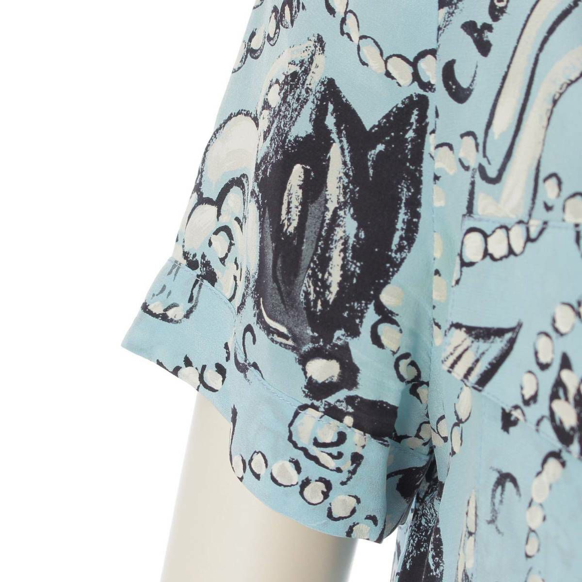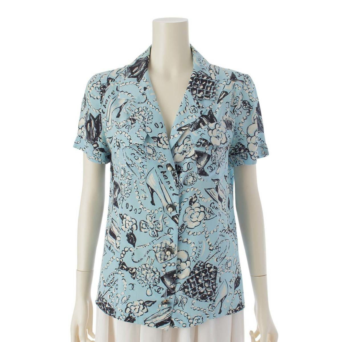 シャネル カメリア ココマーク パールボタン アロハシャツ トップス ブラウス ブルー