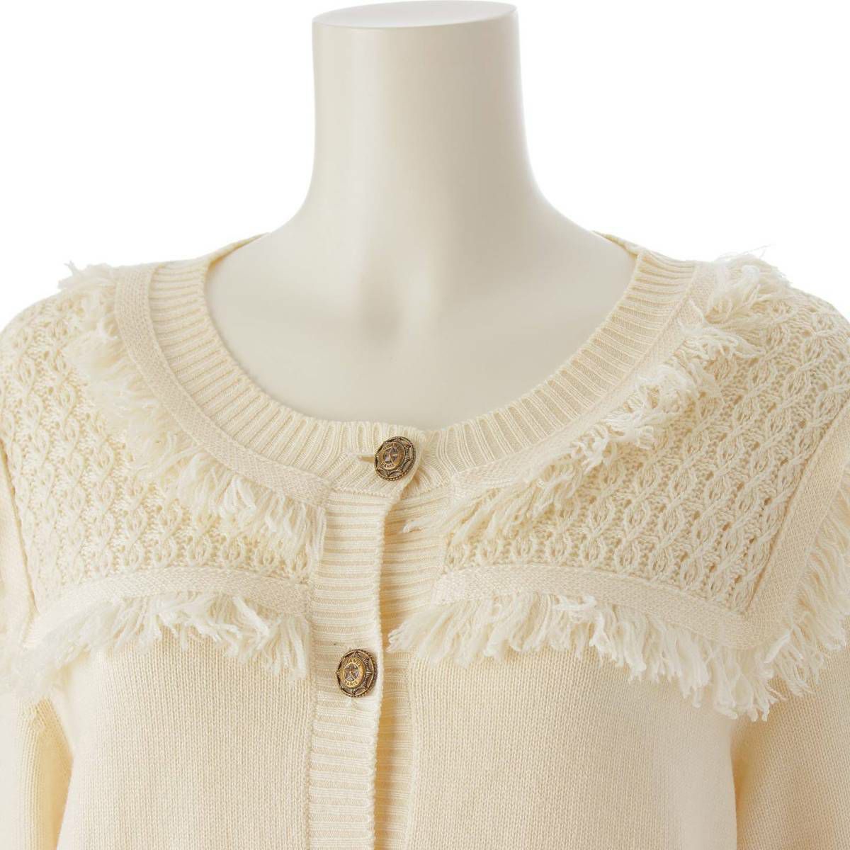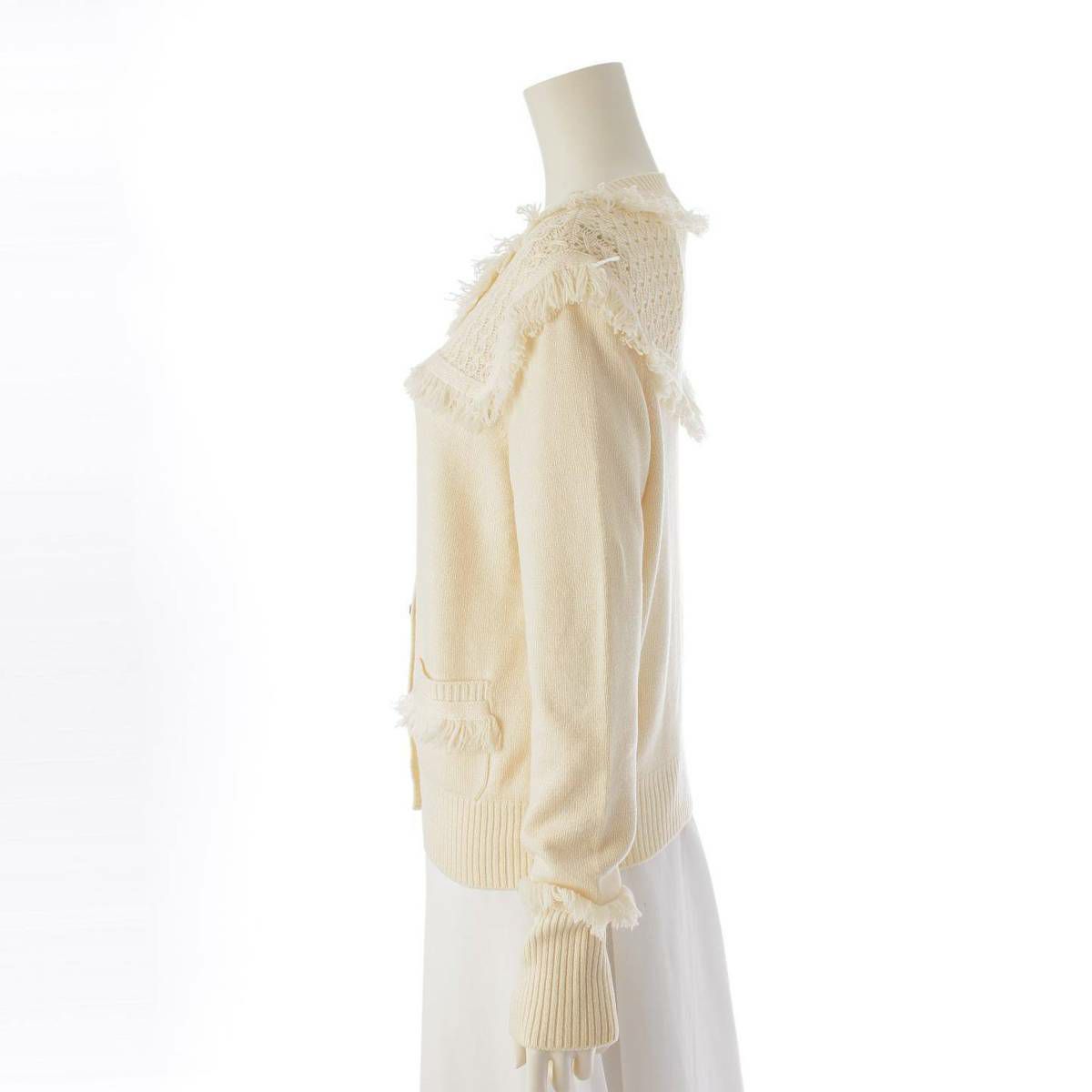 シャネル ロゴ スターボタン 星 フリンジ カシミヤ ニット カーディガン P49690 ベージュ 38