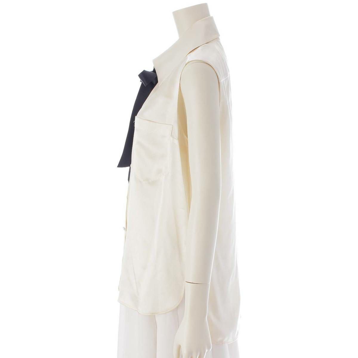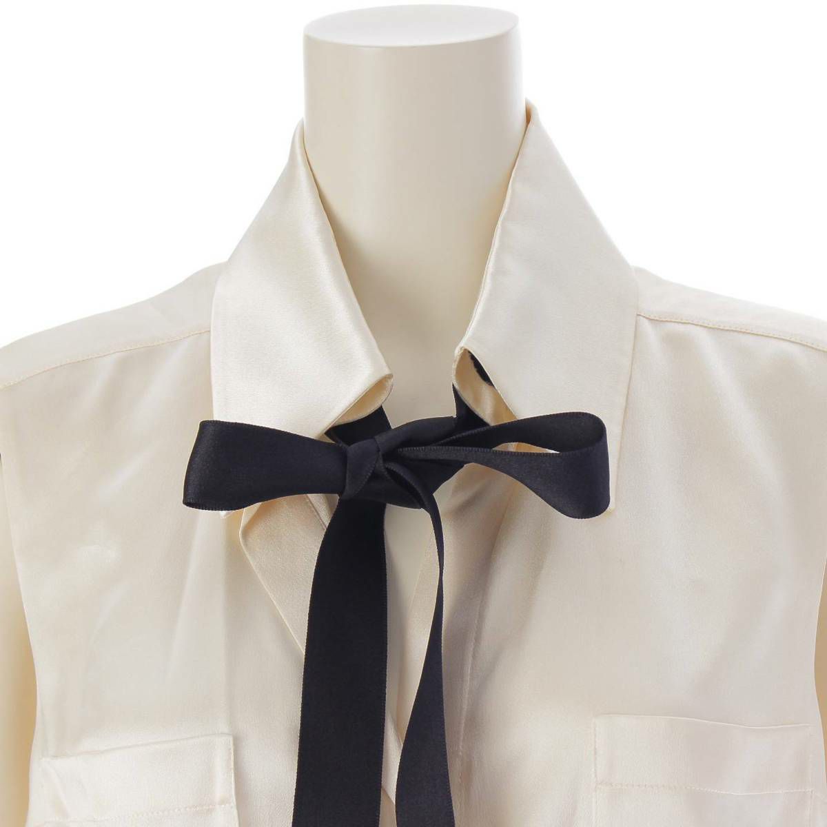 シャネル 06C シルクブラウス ノースリーブ カメリアリボン P27793 アイボリー×ブラック 40
