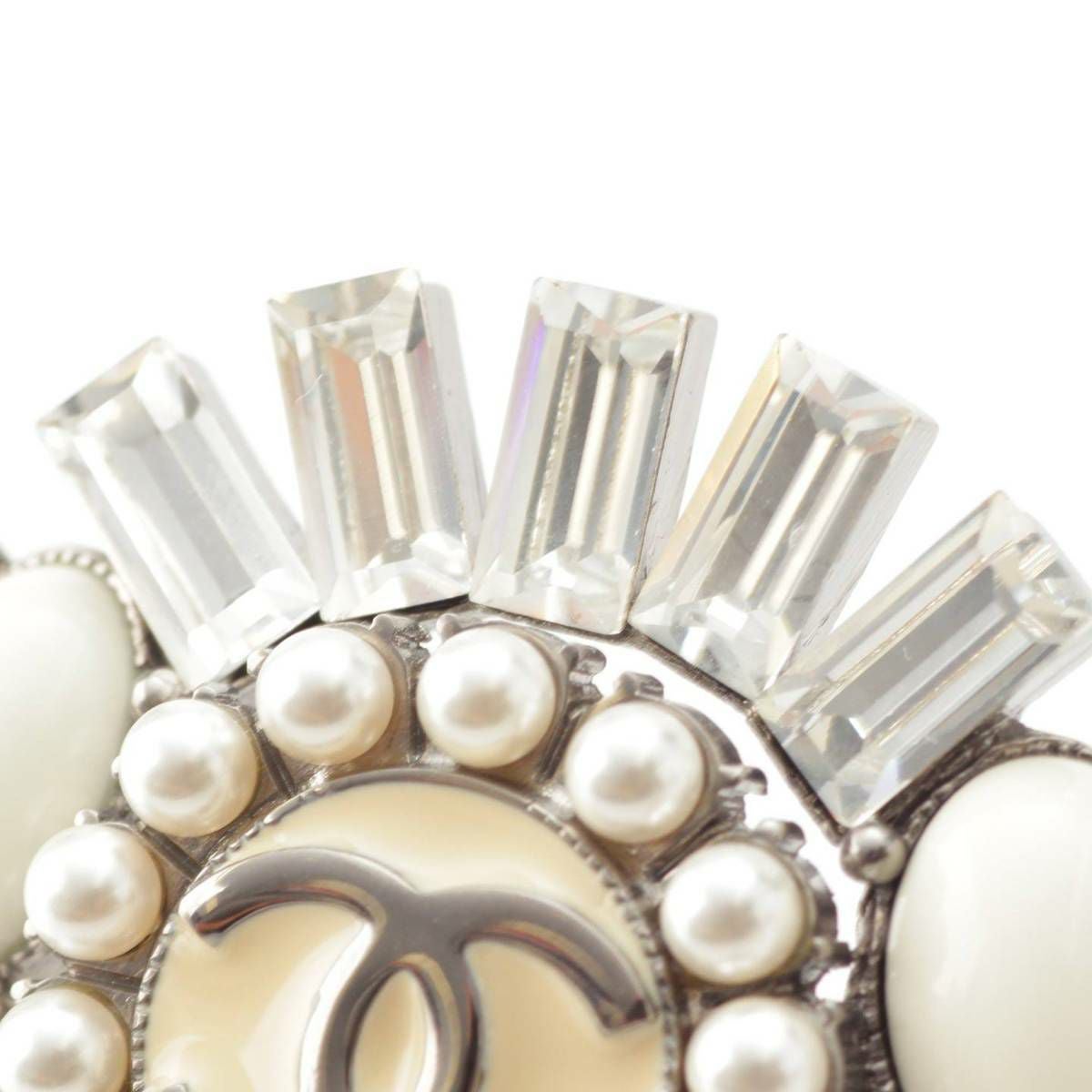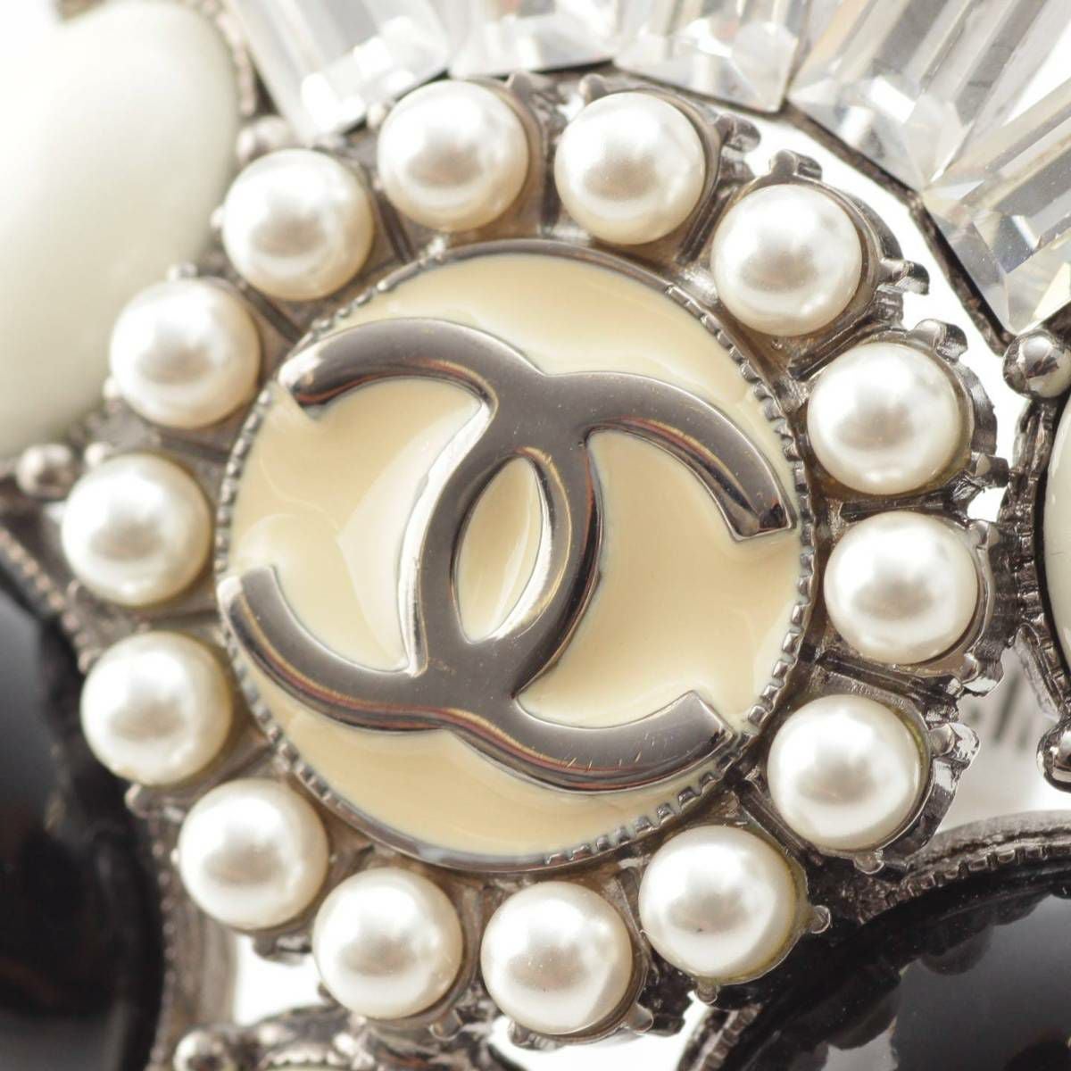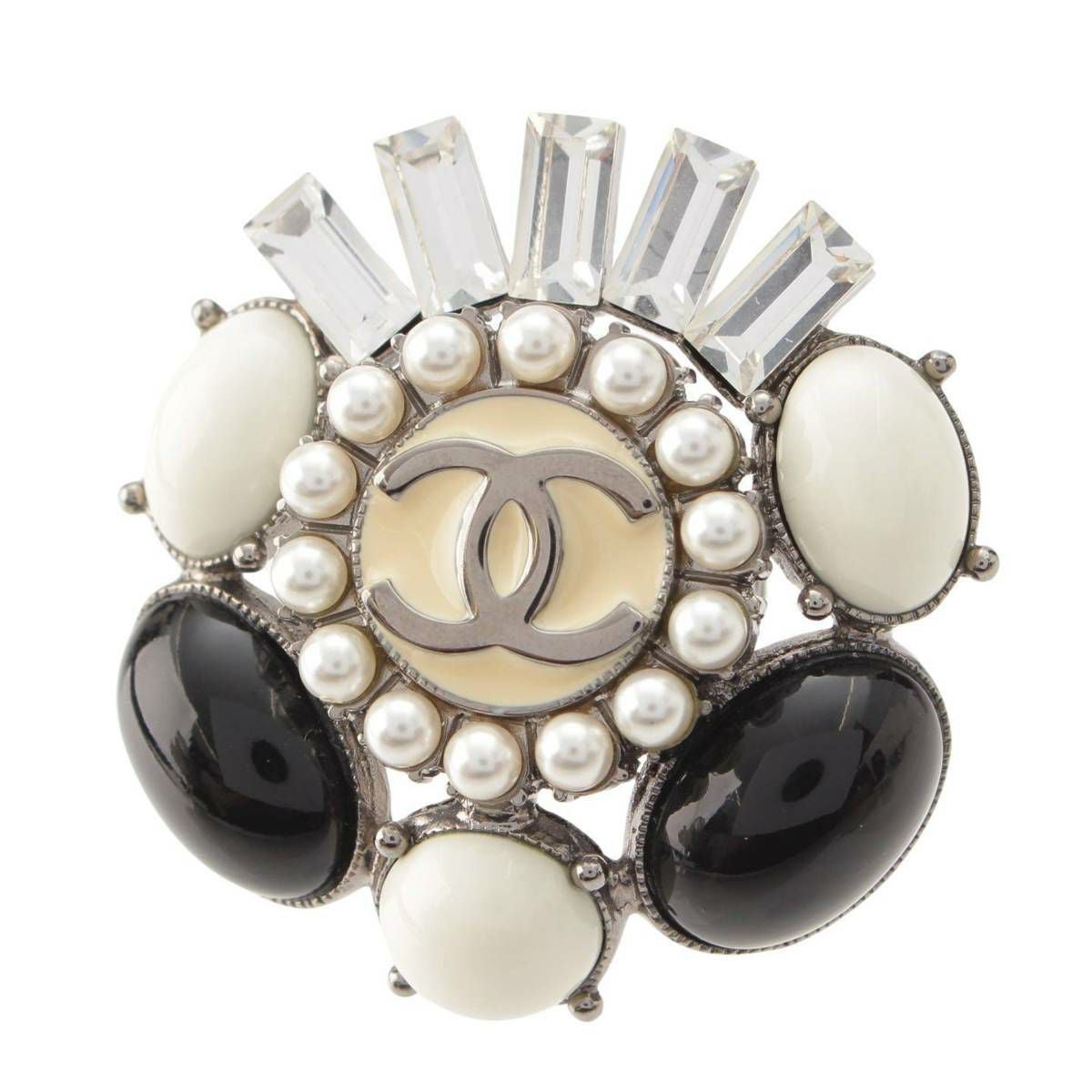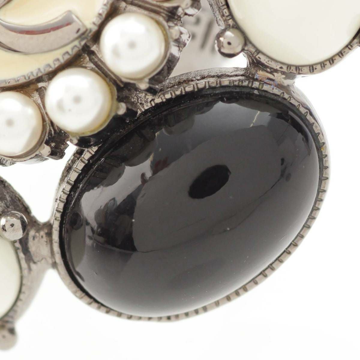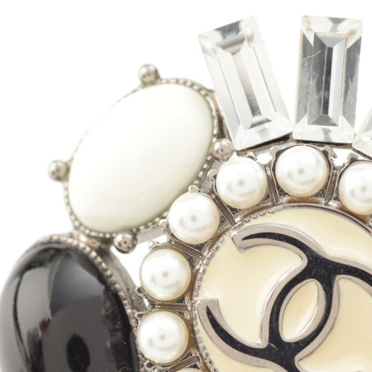 シャネル Chanel 06C ココマーク ビジュー フェイクパール ストーン リング 指輪 クリア ブラック 12号