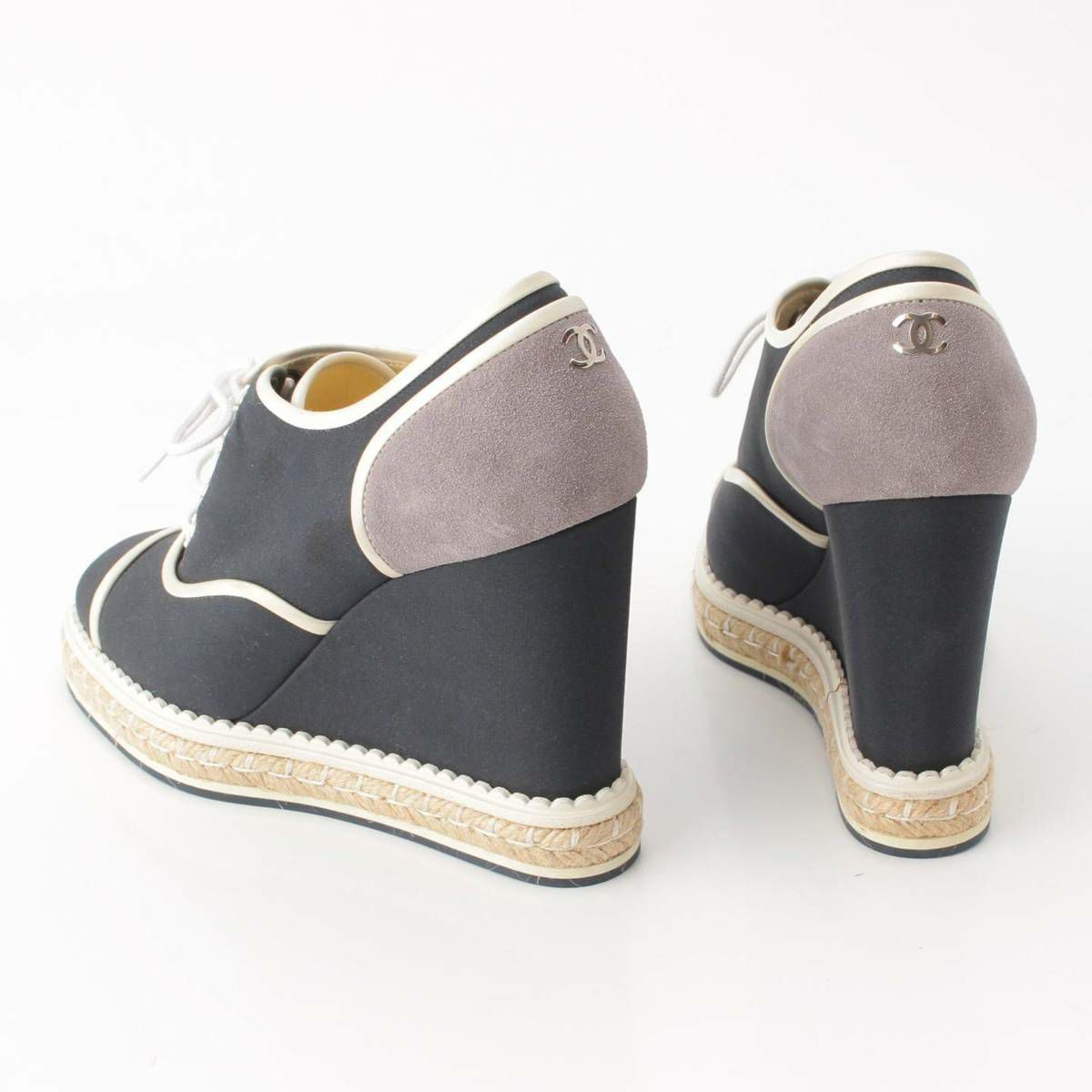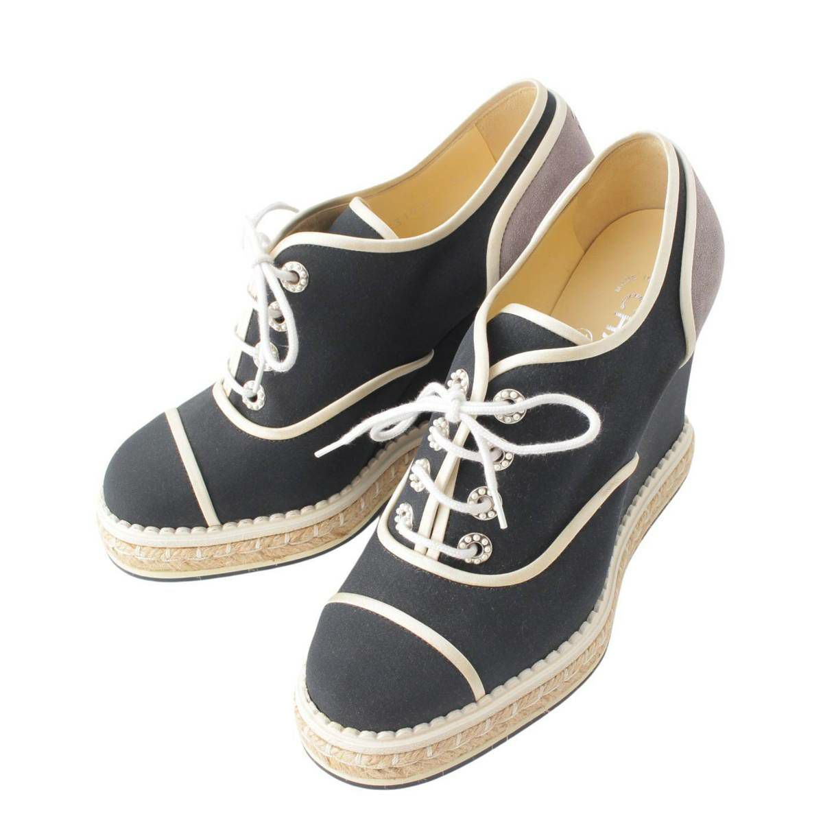 シャネル Chanel レースアップ エスパドリーユ 厚底 ウェッジソール シューズ G31555 ブラック 38