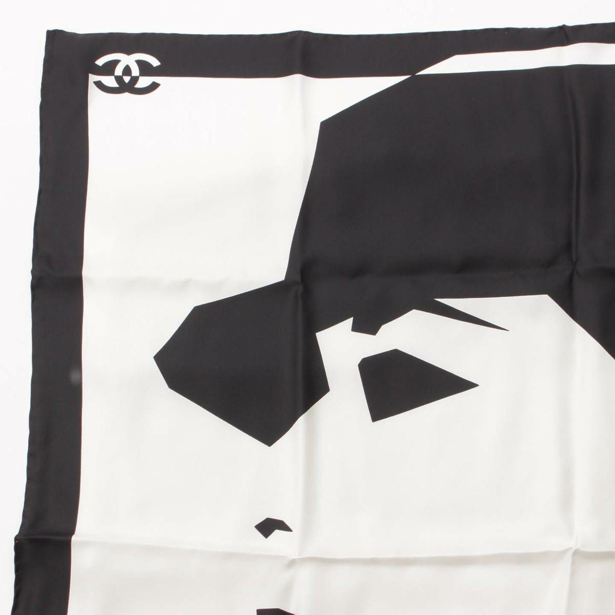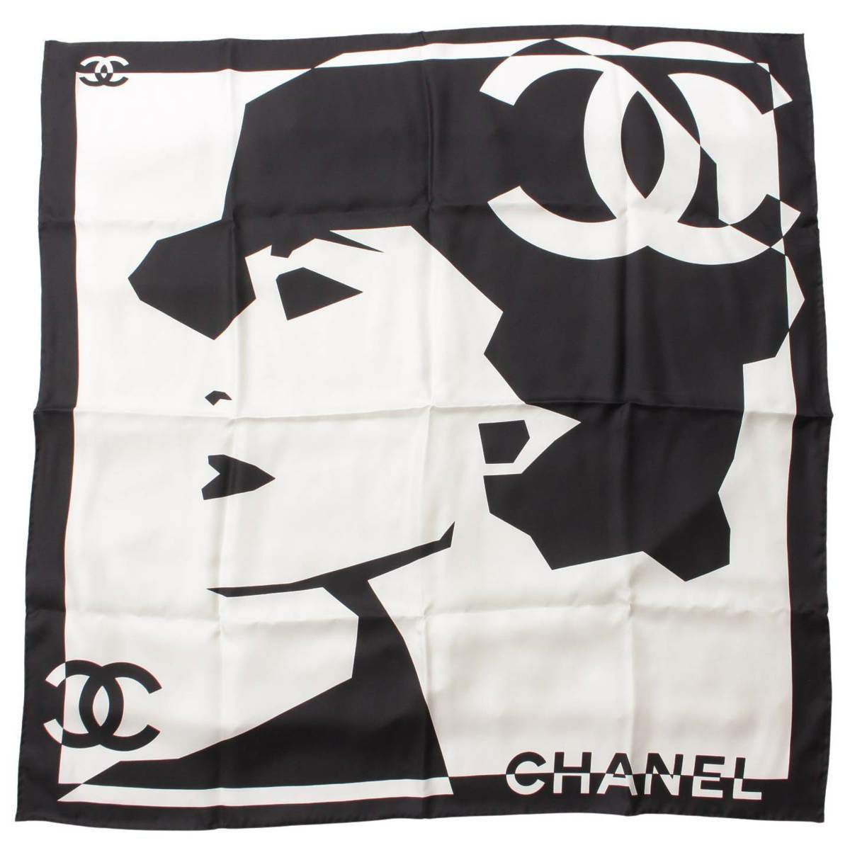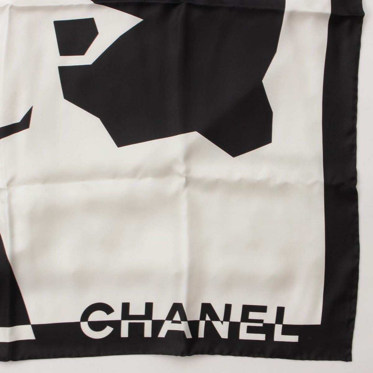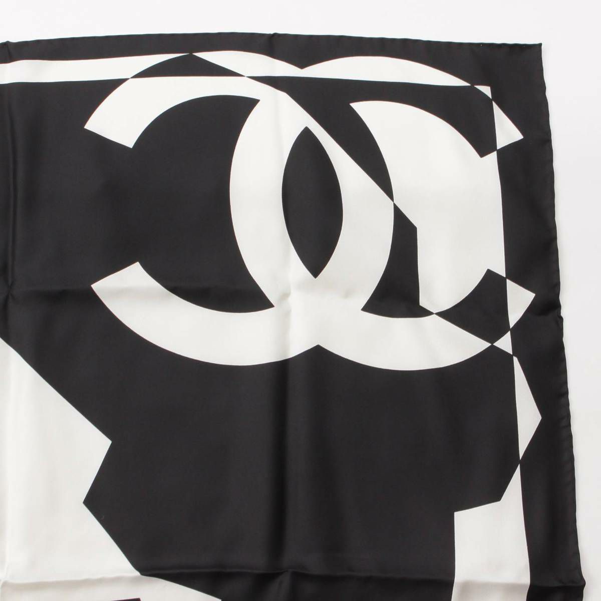 シャネル Chanel ココマーク ロゴ シルク スカーフ ブラック×ホワイト