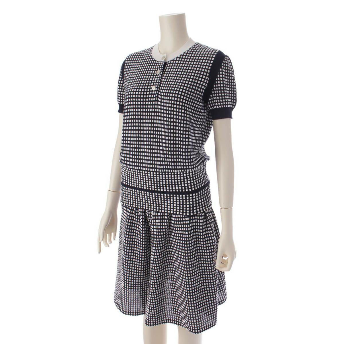 シャネル Chanel スクエアドット コットン トップス&スカート セットアップ ブラック×ホワイト 38