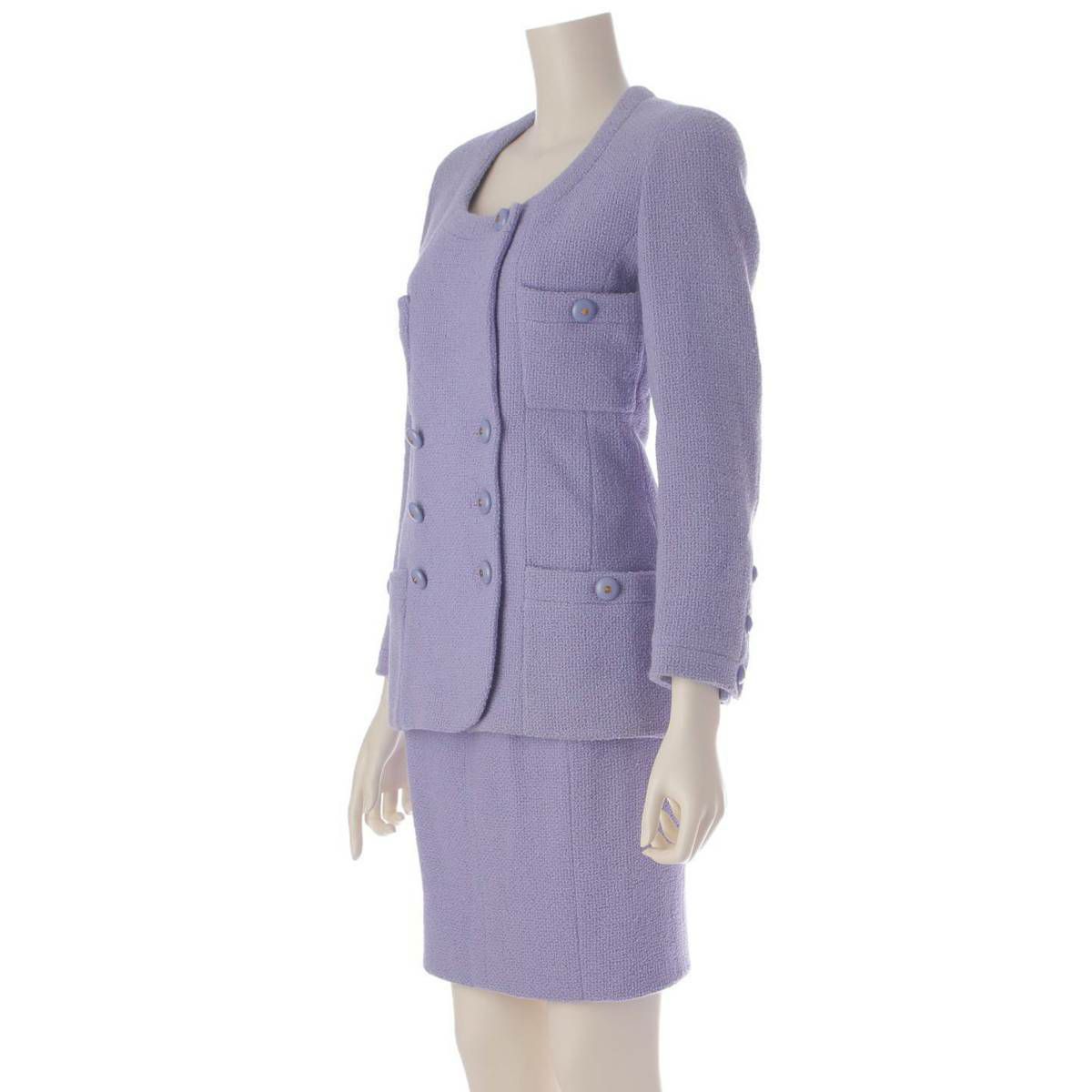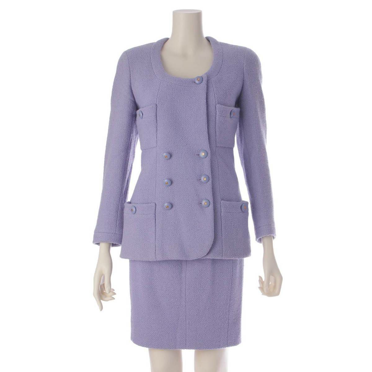 シャネル Chanel ツイード ウール ジャケット&スカート セットアップ ラベンダー 36