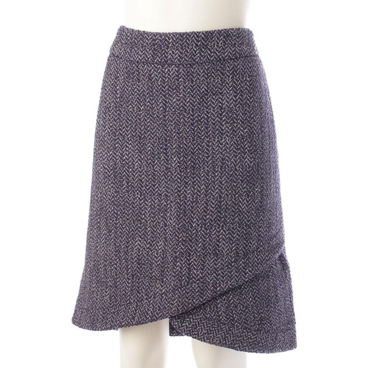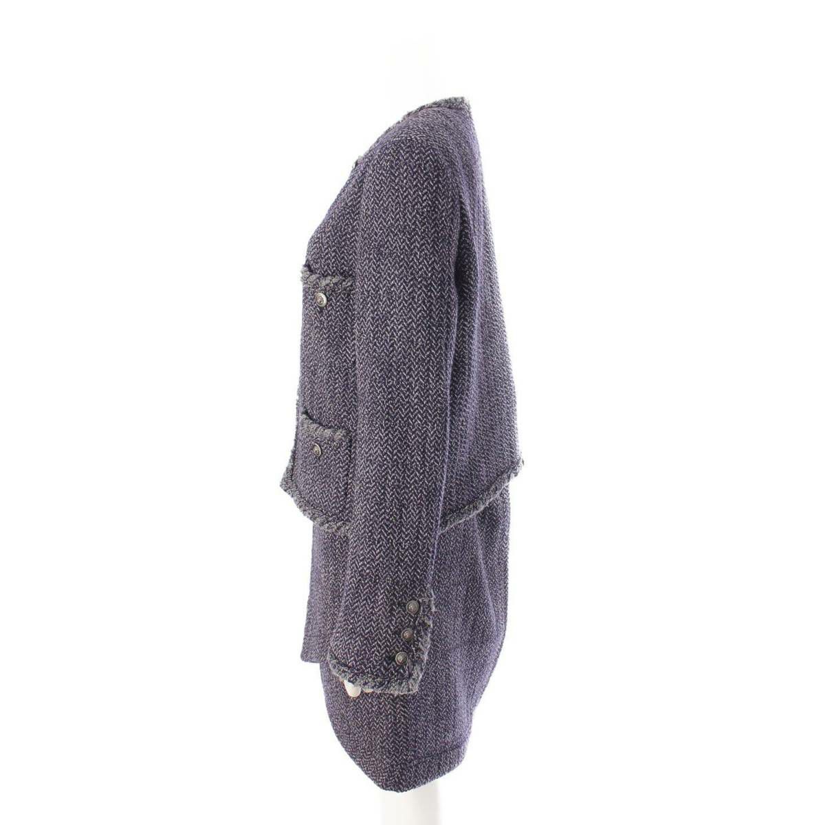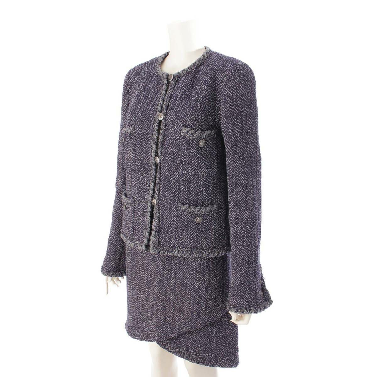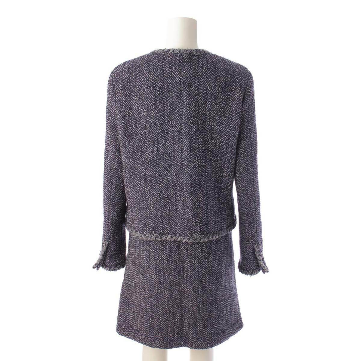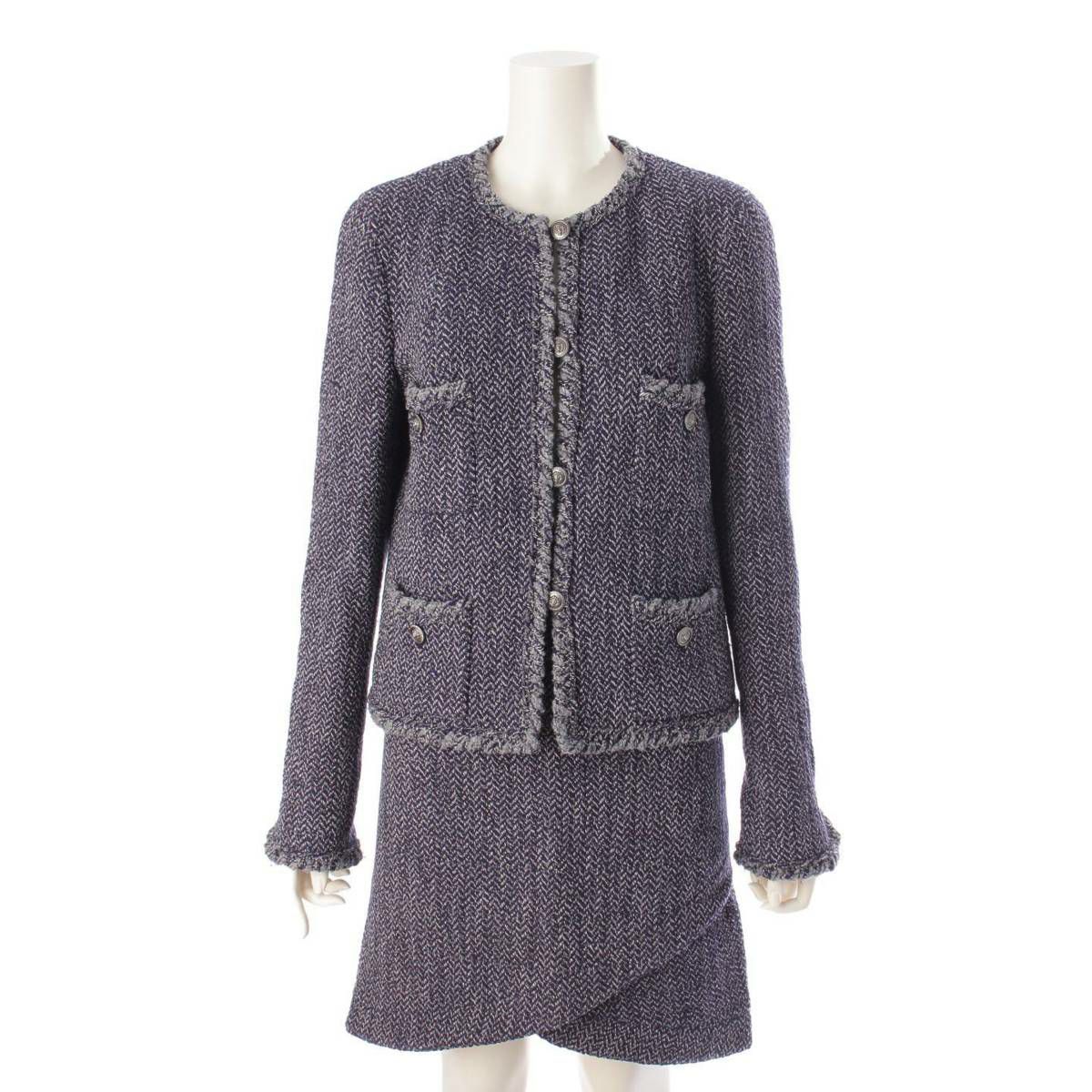 シャネル Chanel 08A ウール ツイード ライオンボタン ジャケット スカート セットアップ ネイビー 42