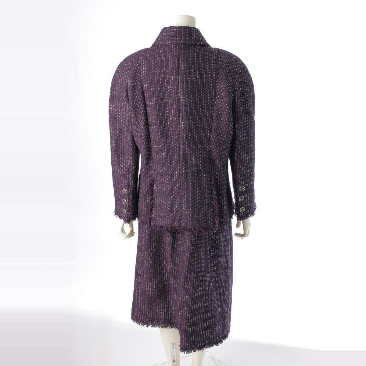 シャネル 08P コットン ウール混 ツイード アンサンブル セットアップ パープル 46