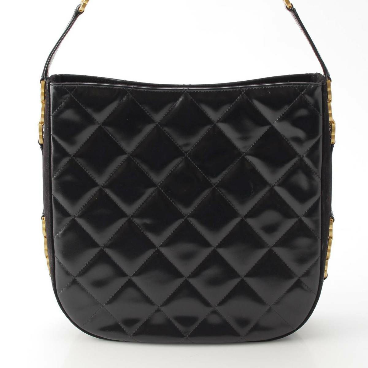 シャネル 2022 シャイニーカーフスキン ワンショルダーバッグ ホーボーバッグ ブラック