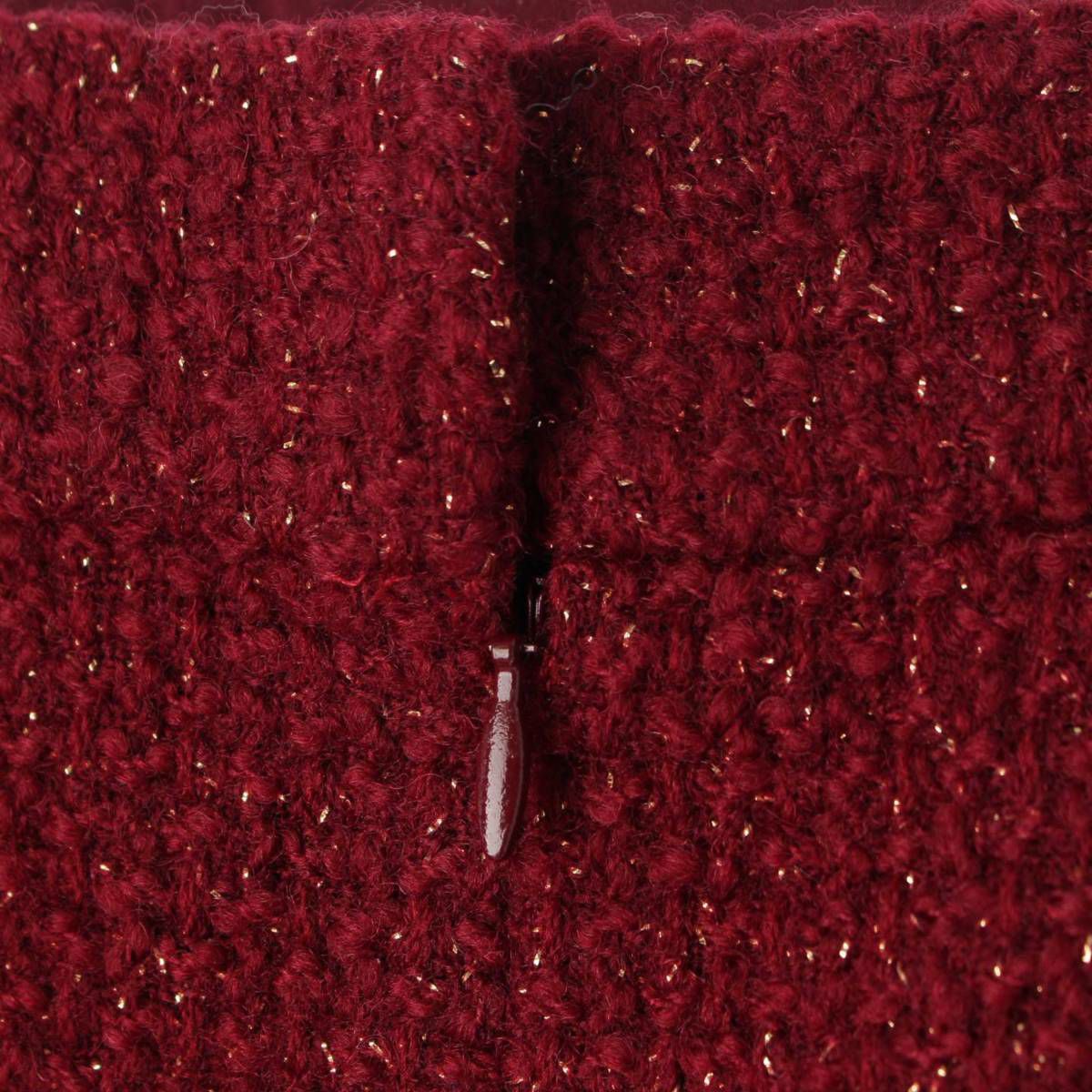 シャネル Chanel ココマーク ラインストーン ラメ ツイード スカート P73642 レッド 38
