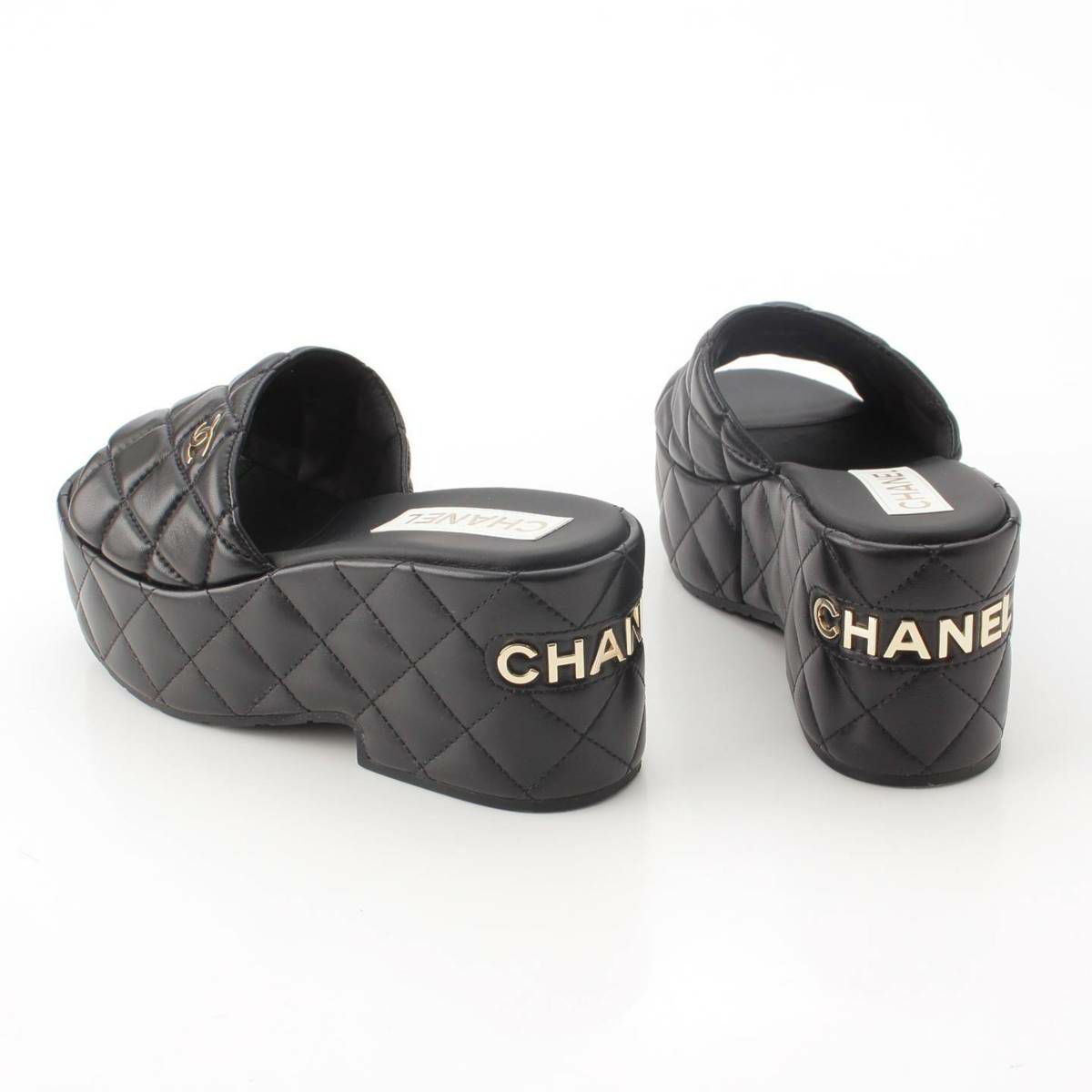 シャネル Chanel 23C ココマーク ロゴ マトラッセ レザー サンダル ミュール G39676 ブラック 37