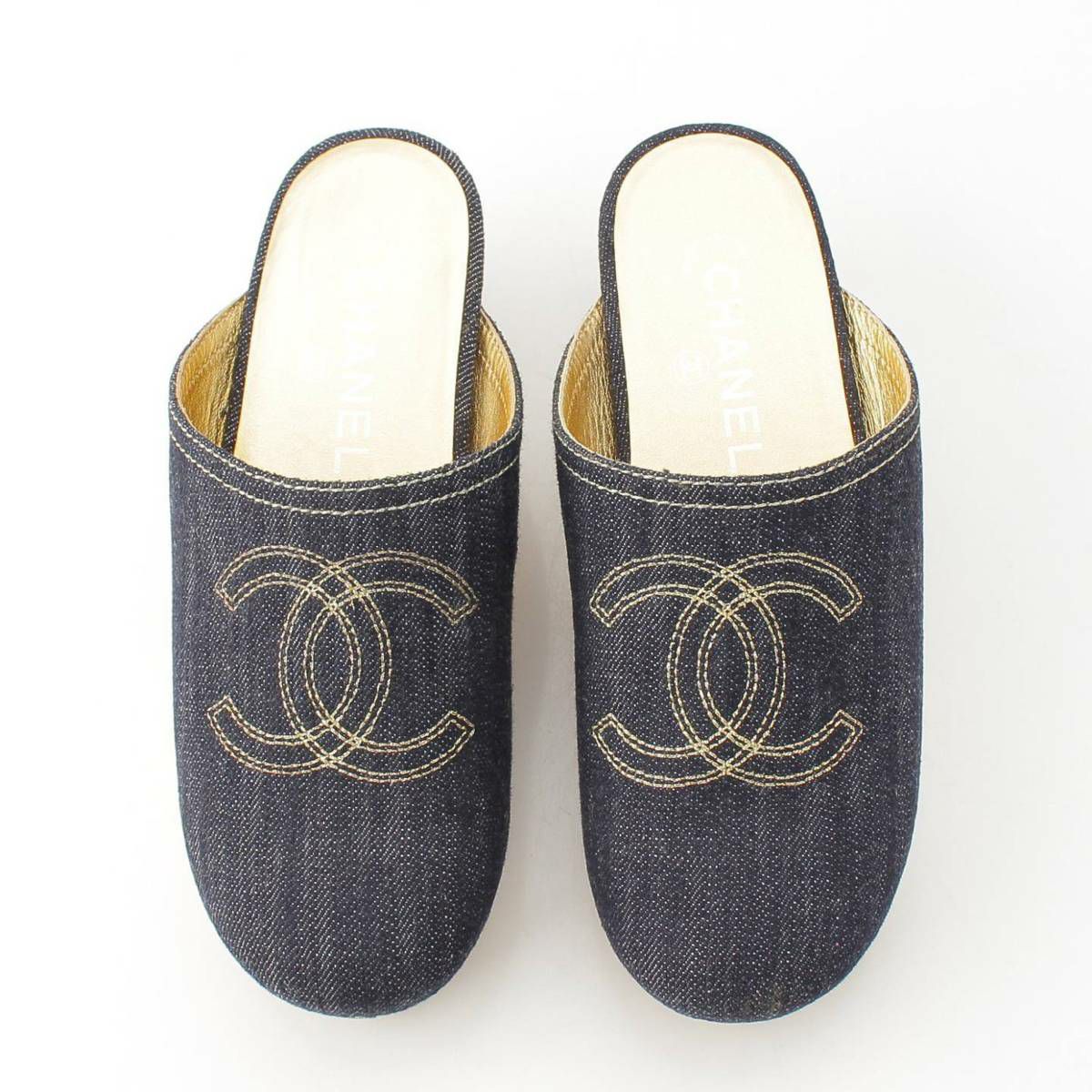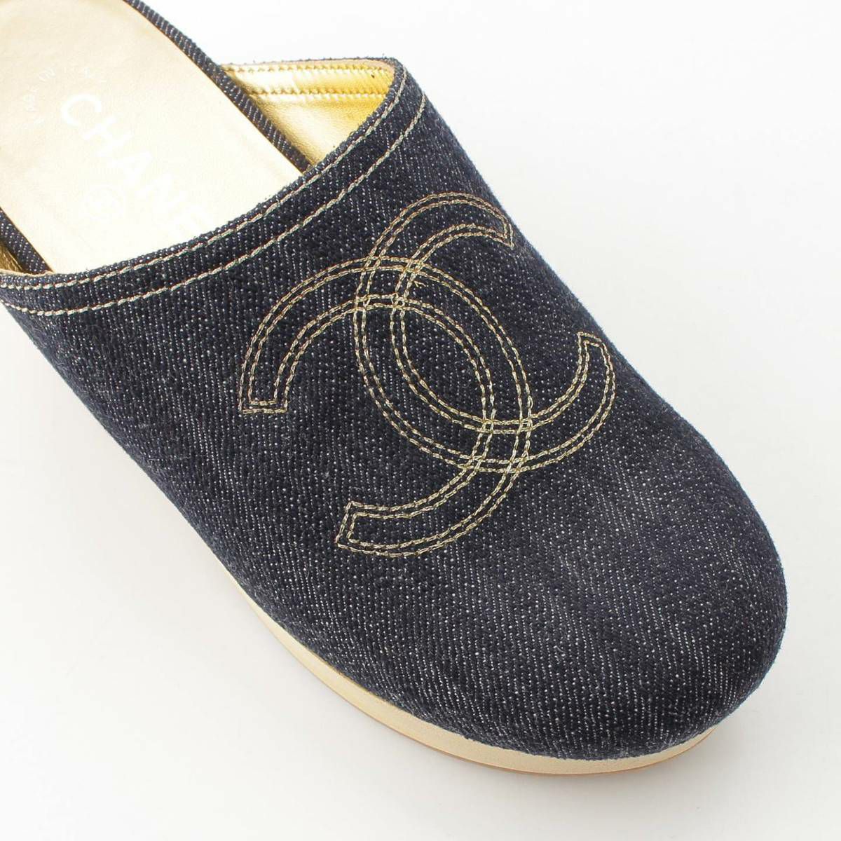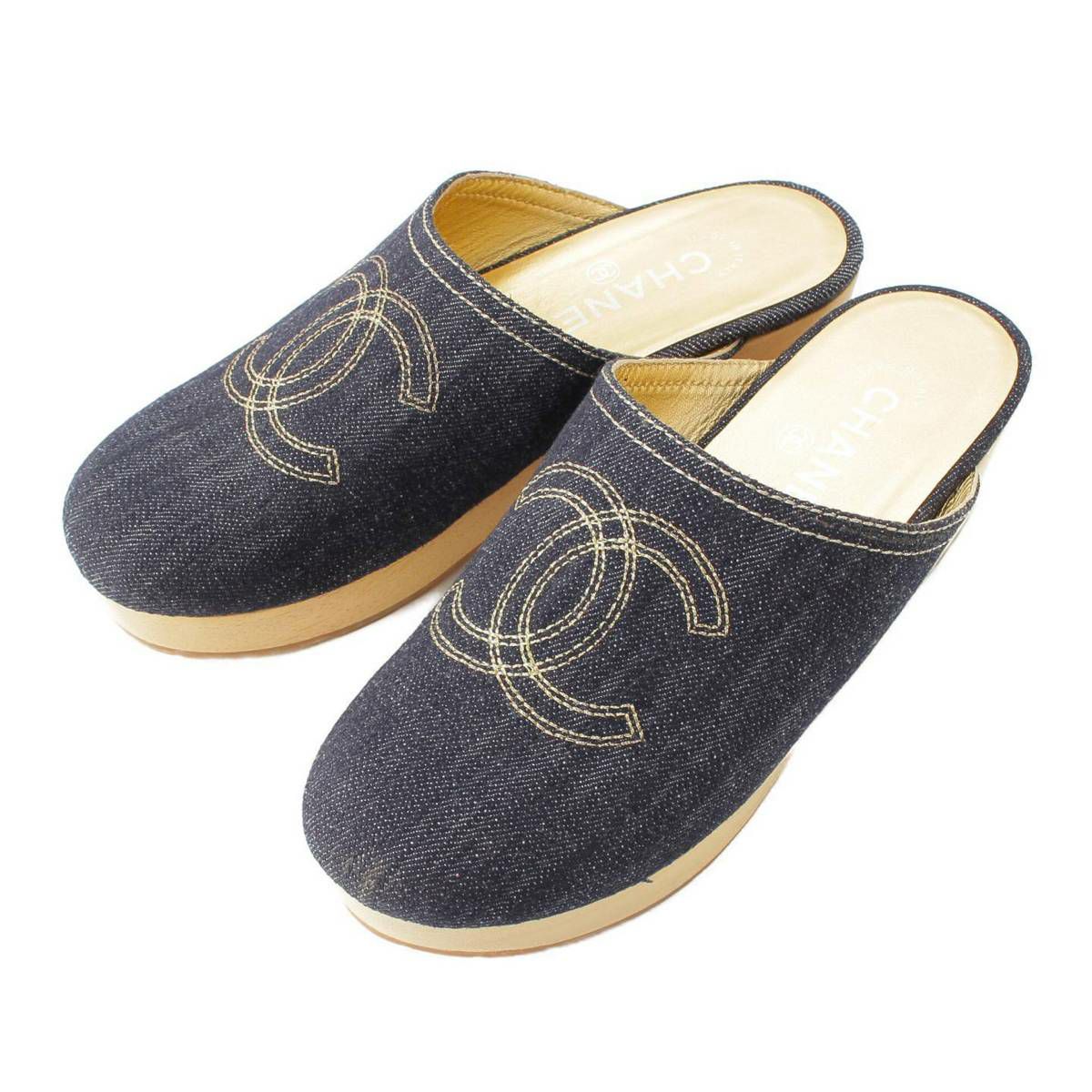 シャネル Chanel ココマーク デニム サボサンダル サンダル シューズ インディゴ ゴールド 36