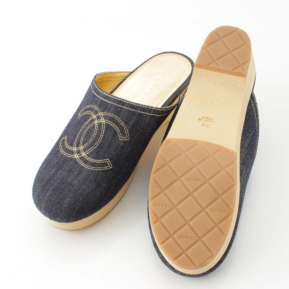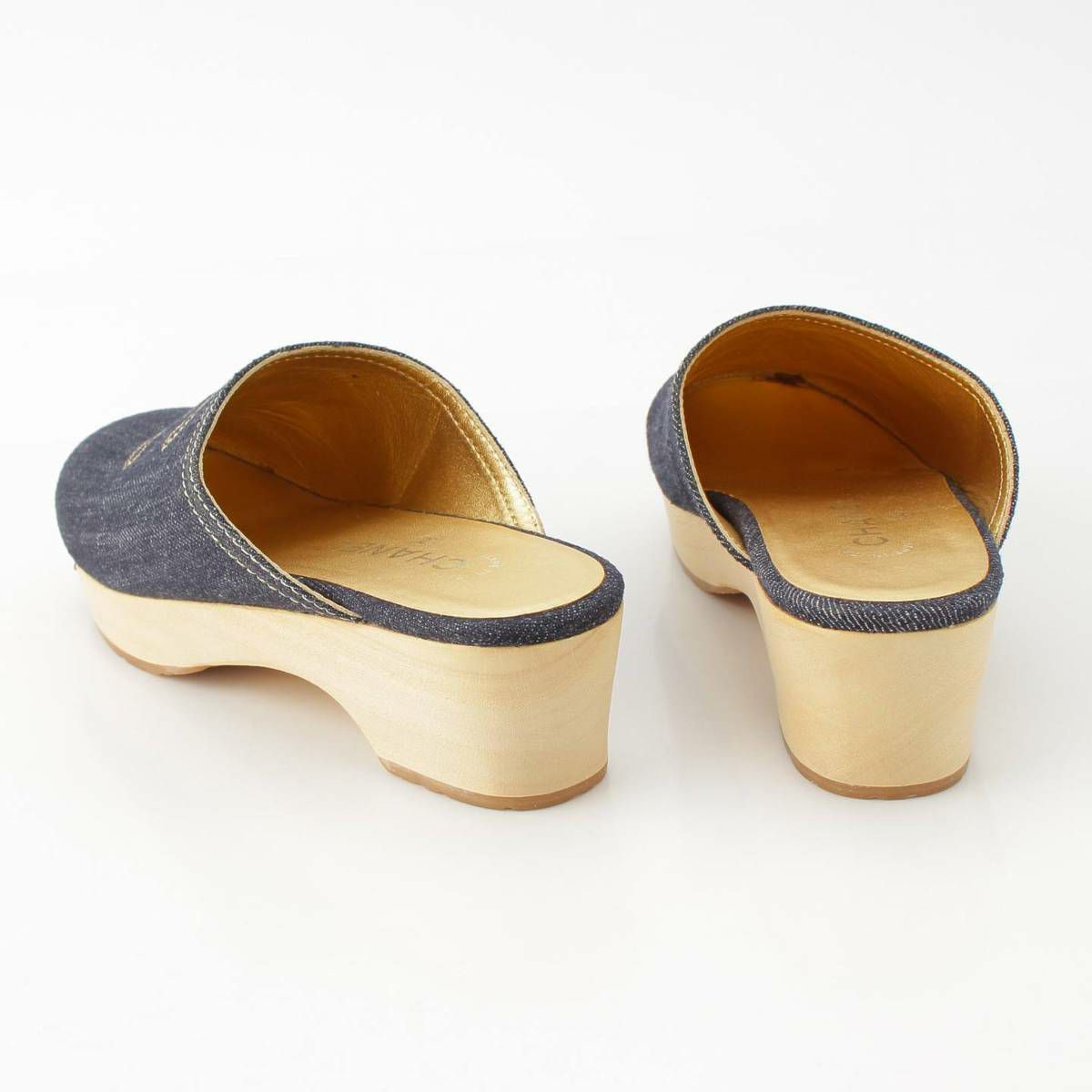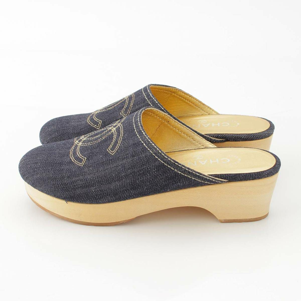 シャネル Chanel ココマーク デニム サボサンダル サンダル シューズ インディゴ ゴールド 36