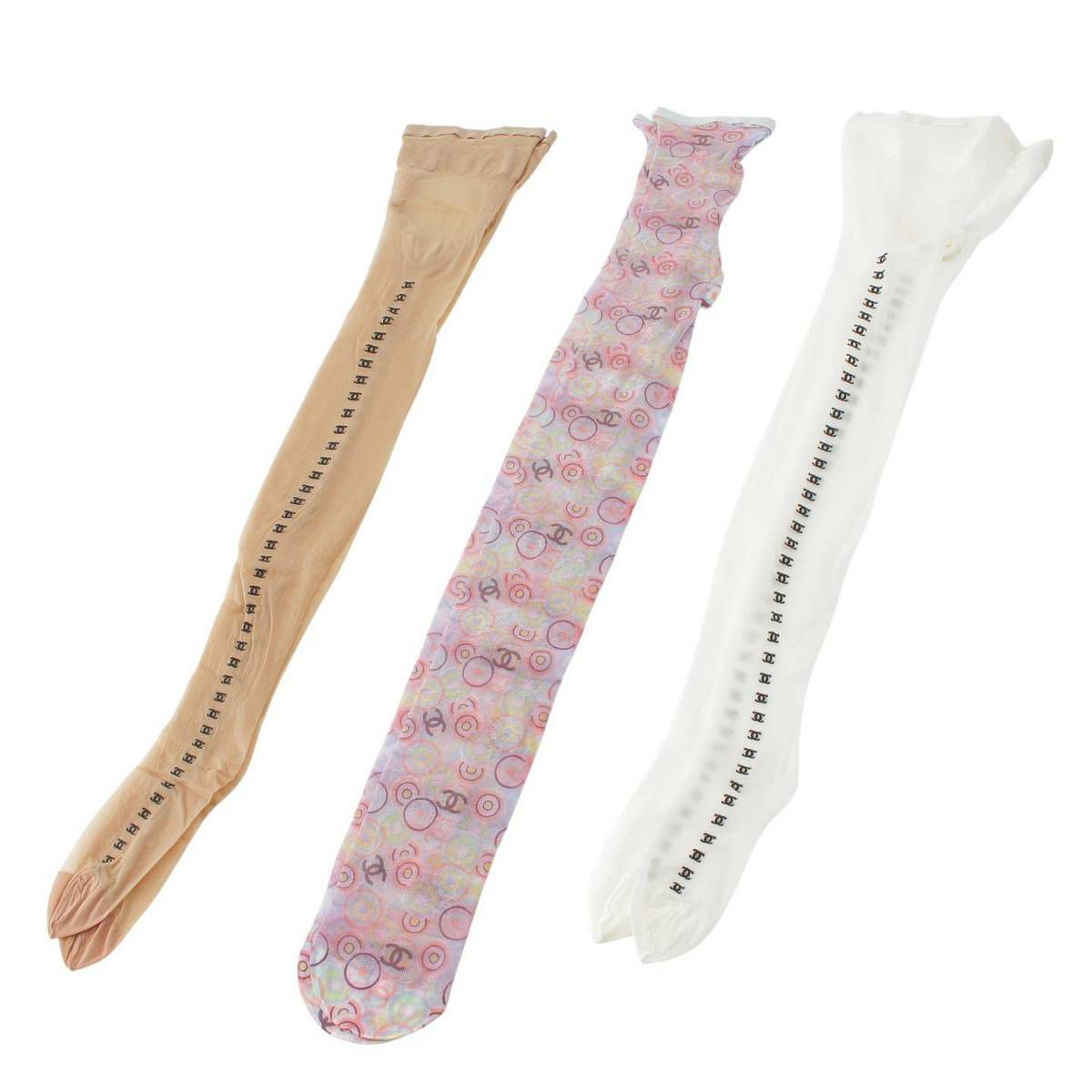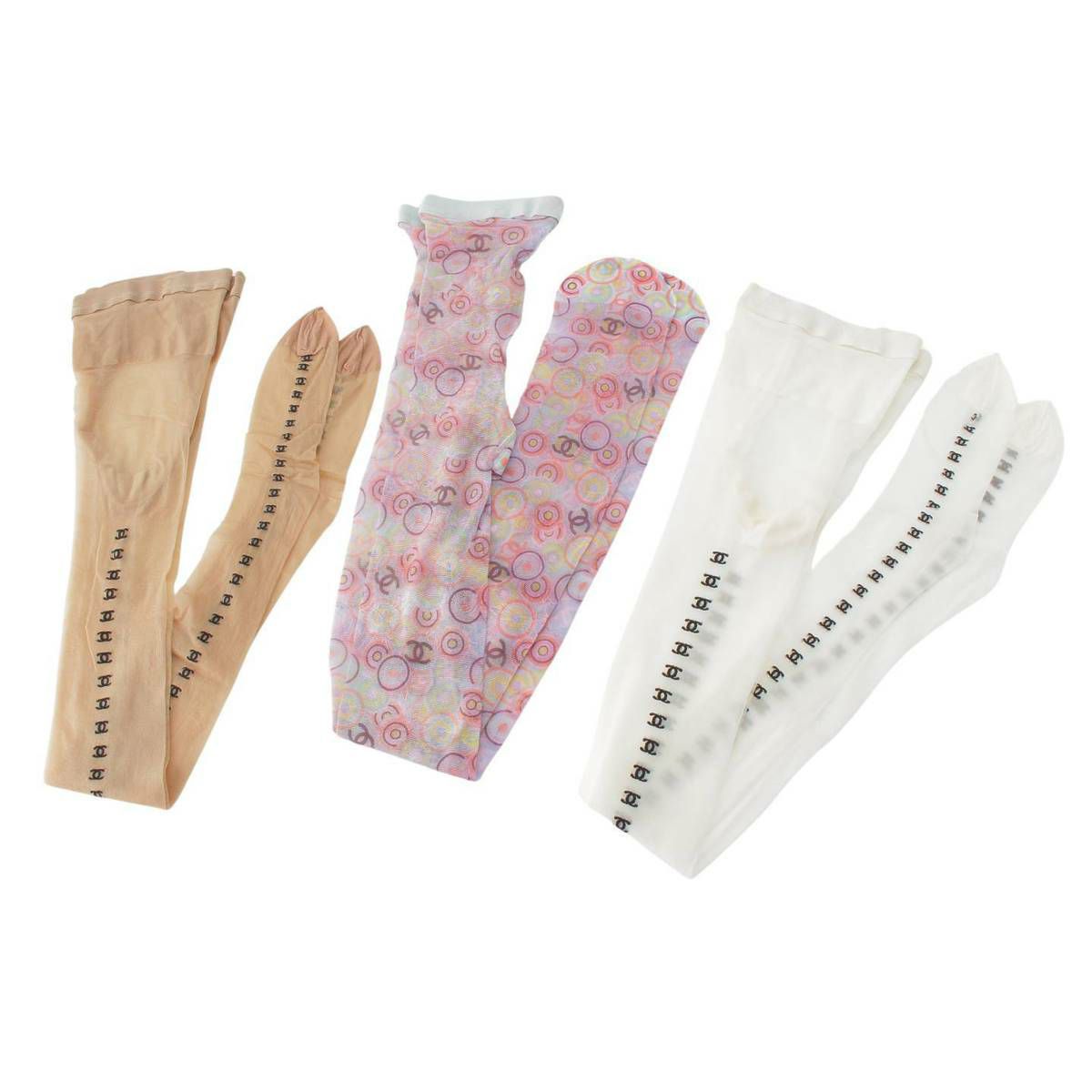 シャネル Chanel ココマーク 総柄 ストッキング 3点セット ベージュ×ホワイト×マルチカラー