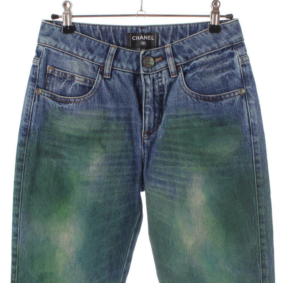 シャネル Chanel ロゴボタン ペイント ヴィンテージ加工 デニム パンツ P55668 インディゴ 34