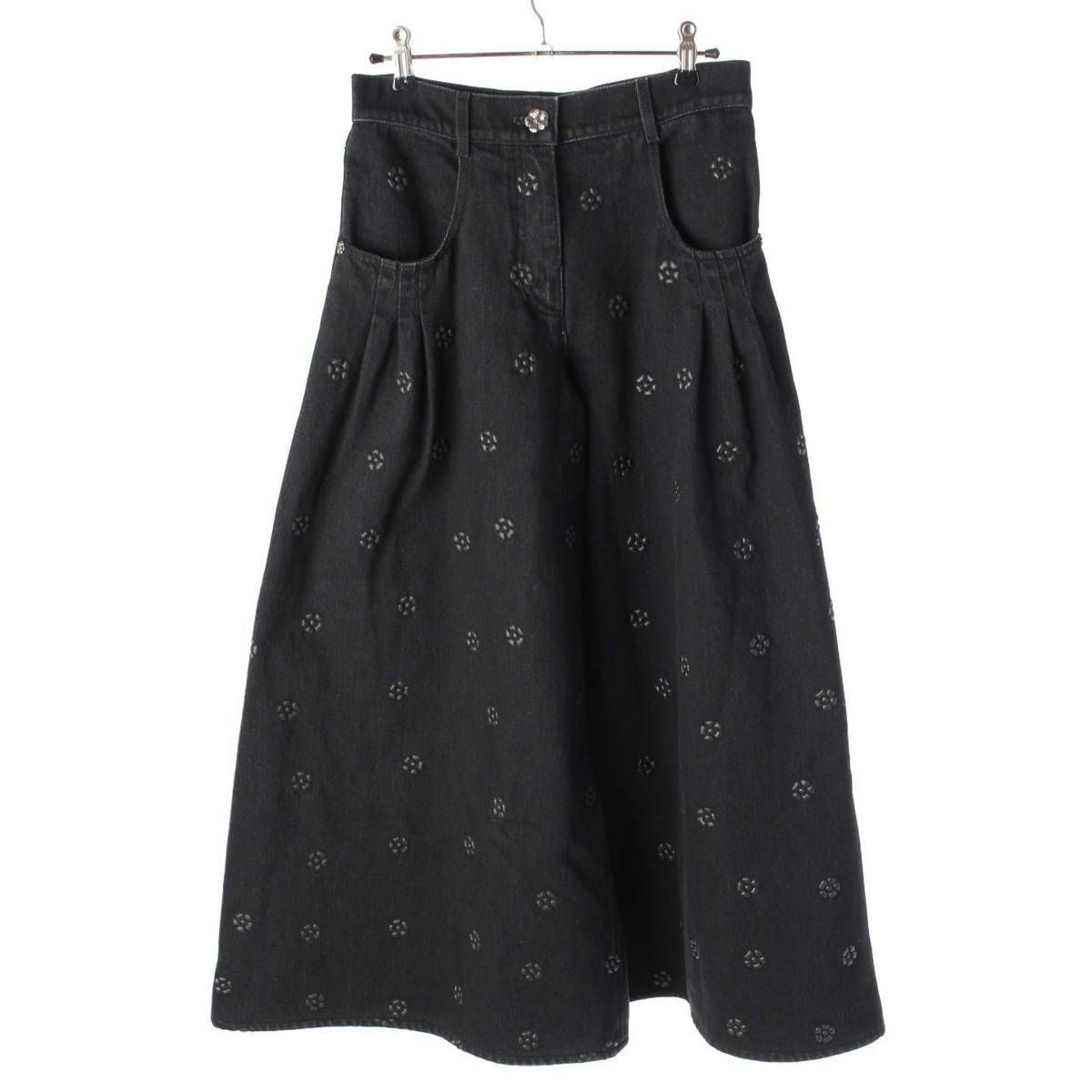 シャネル 23AW ココマーク カメリア フレア デニム パンツ P75958 ブラック 34