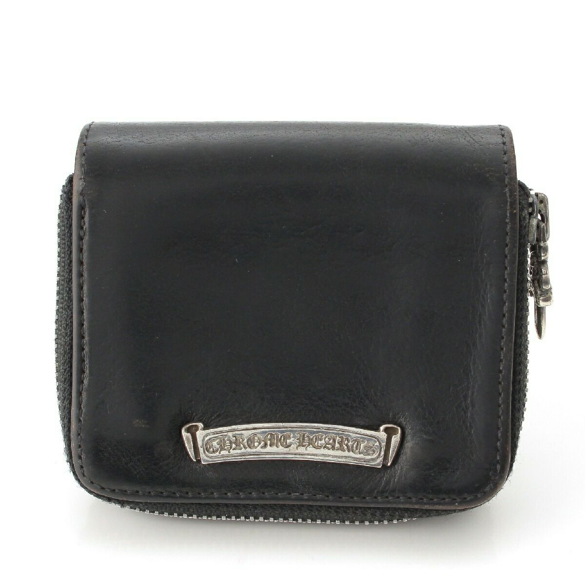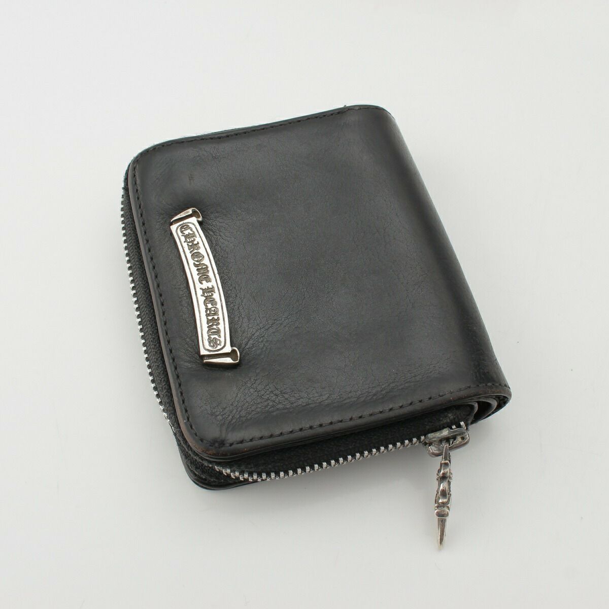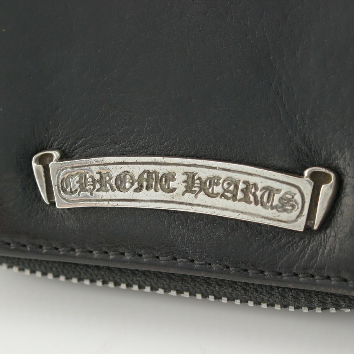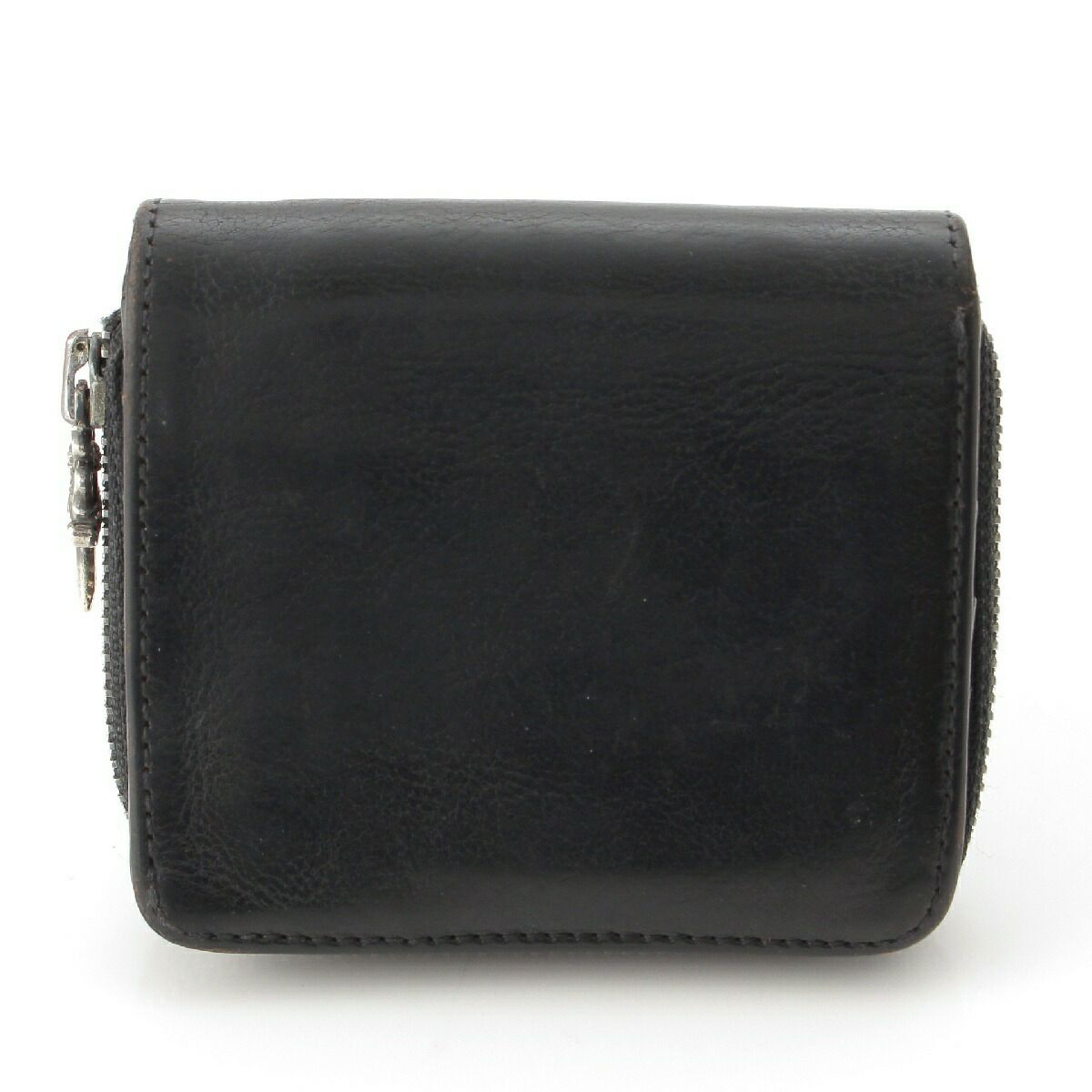 クロムハーツ スクエアジップビル ラウンドジップ レザー ウォレット 財布 ブラック