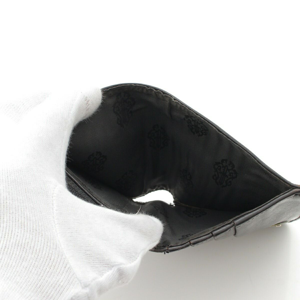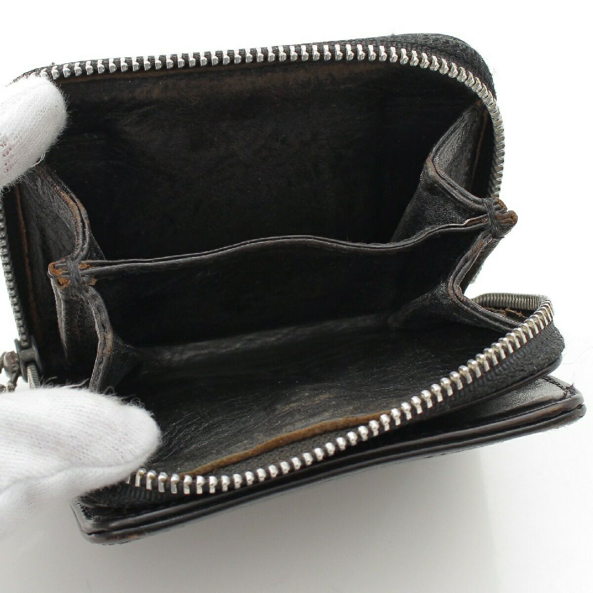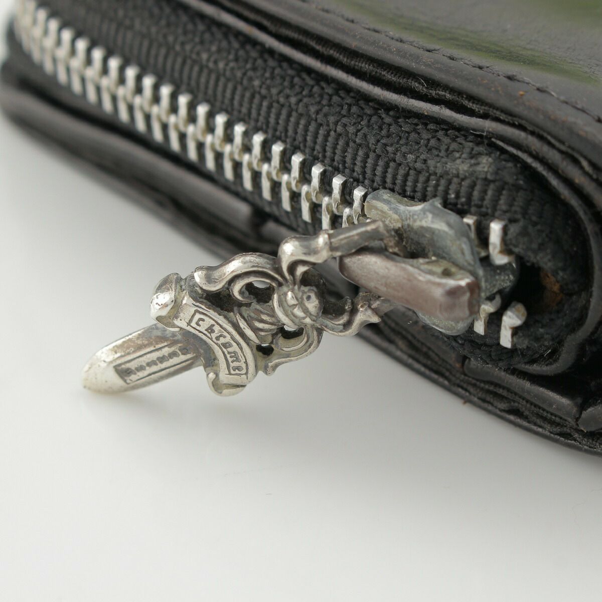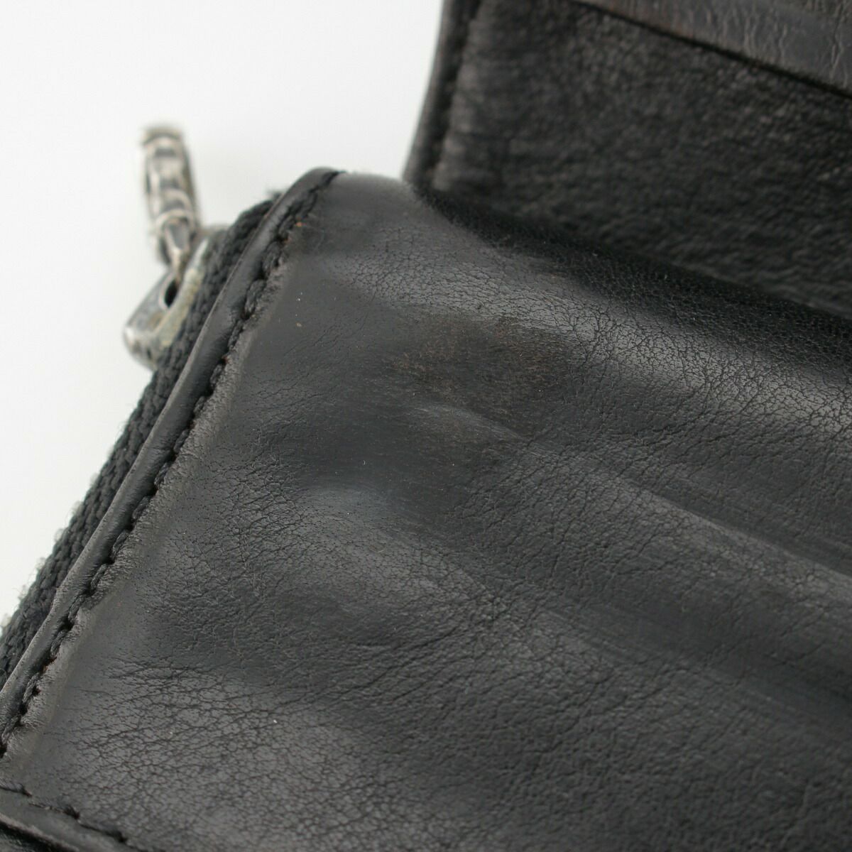 クロムハーツ スクエアジップビル ラウンドジップ レザー ウォレット 財布 ブラック