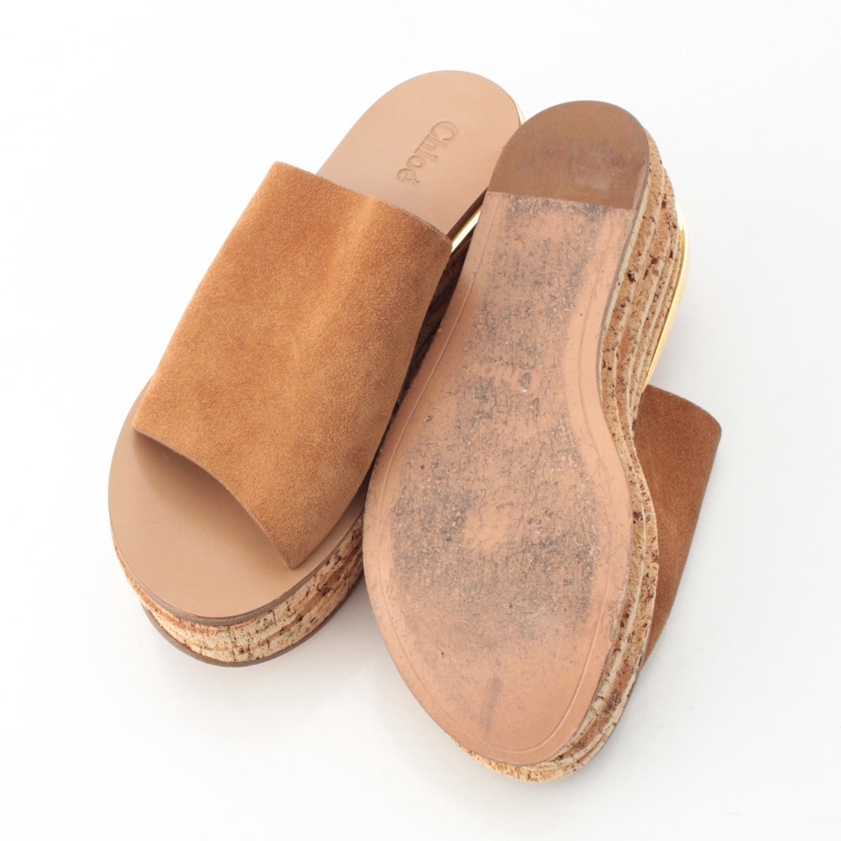 クロエ カミーユ スウェード 厚底 サンダル コルクソール ウエッジソール ブラウン