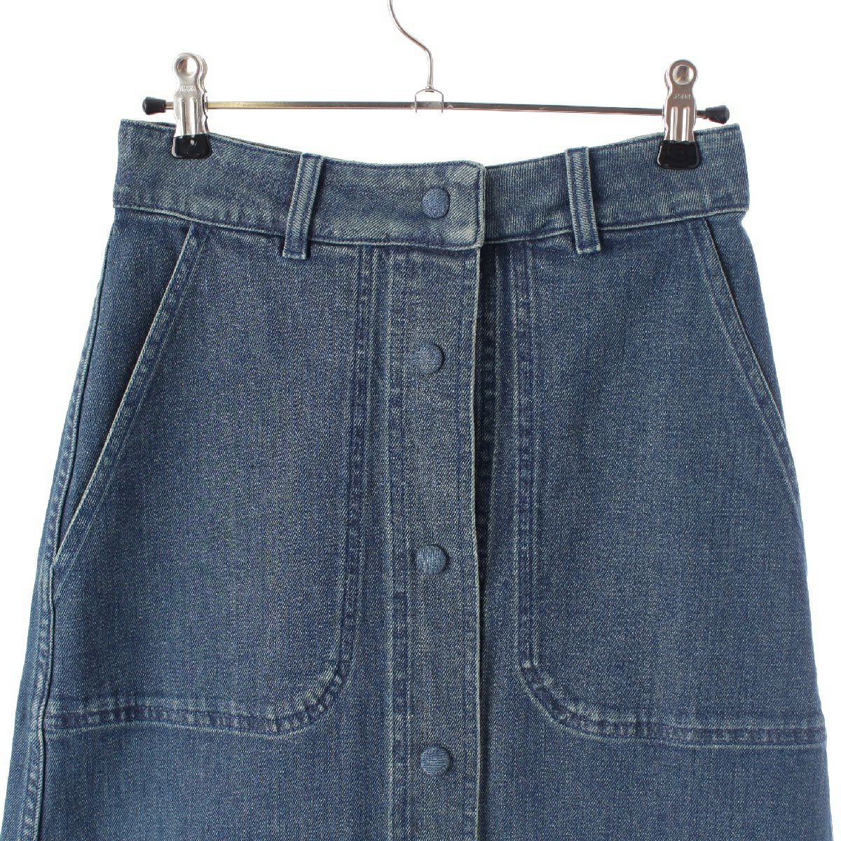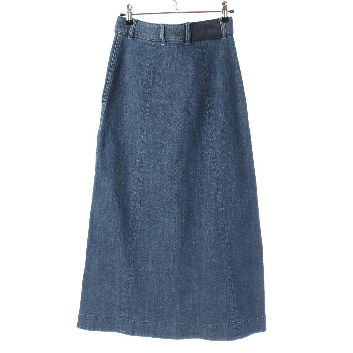 クロエ コットンデニム ロゴ フロントボタン ロング スカート CHC21WDJ0215140X34 インディゴ ダスキーブルー 34