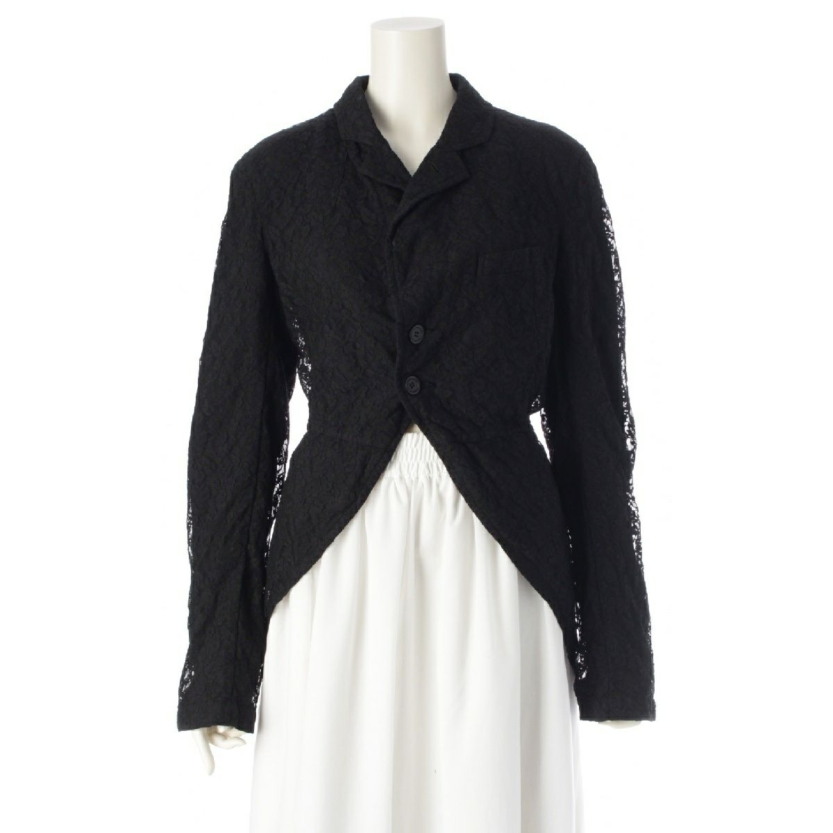 ブラックコムデギャルソン ポリエステル縮絨 製品染め 燕尾 ロング レース テーラードジャケット シャツ トップス 1K-J013 ブラック S