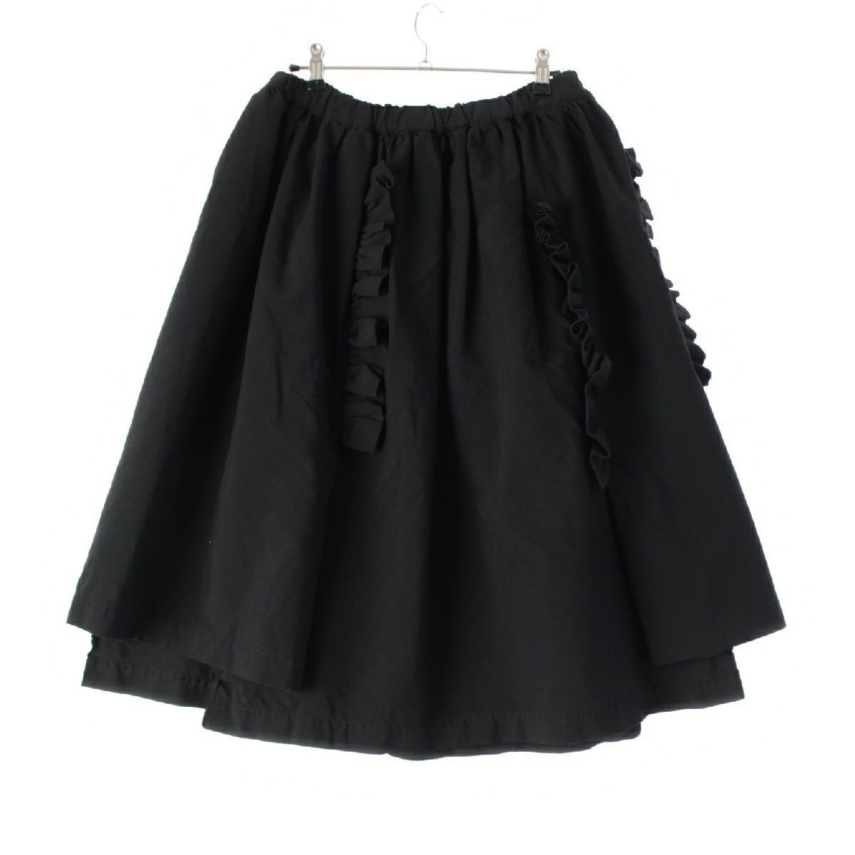コムデギャルソン 17SS 縦フリルデザイン ポリエステル縮絨 フレア スカート 膝下丈 GS-S003 AD2016 ブラック XS