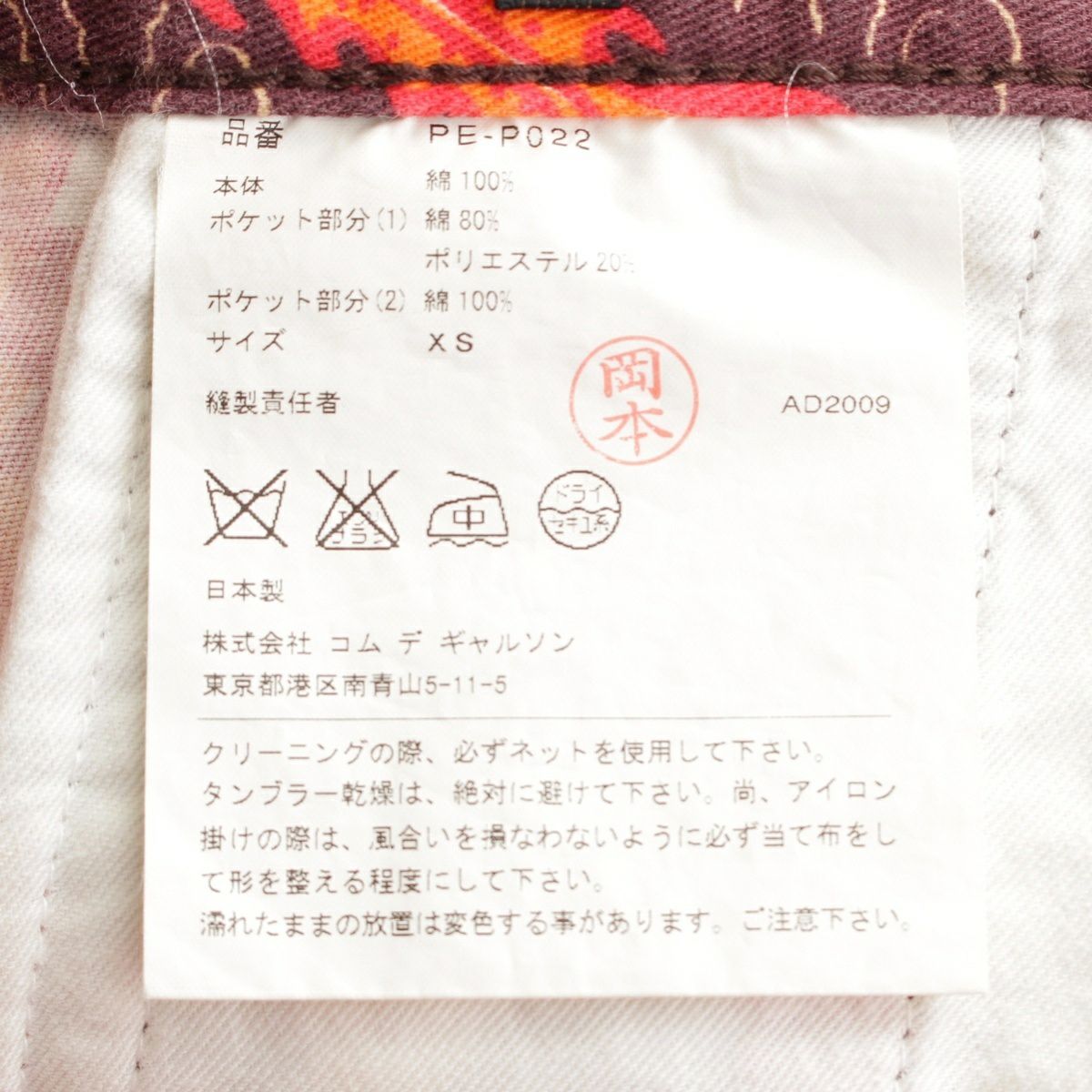 コムデギャルソンオムプリュス AD2009 2010SS コットン 龍柄 コーデュロイ ポケット 切替 サルエル パンツ ボトムス PE-P022 マルチカラー XS