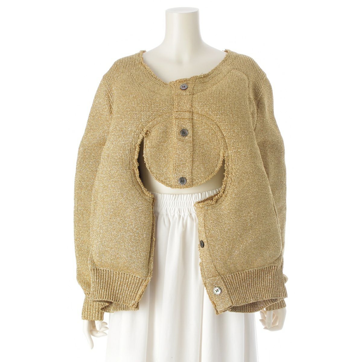 コムデギャルソン AD2018 ナイロン混 変形 ニット セーター トップス GB-N014 ゴールド XS