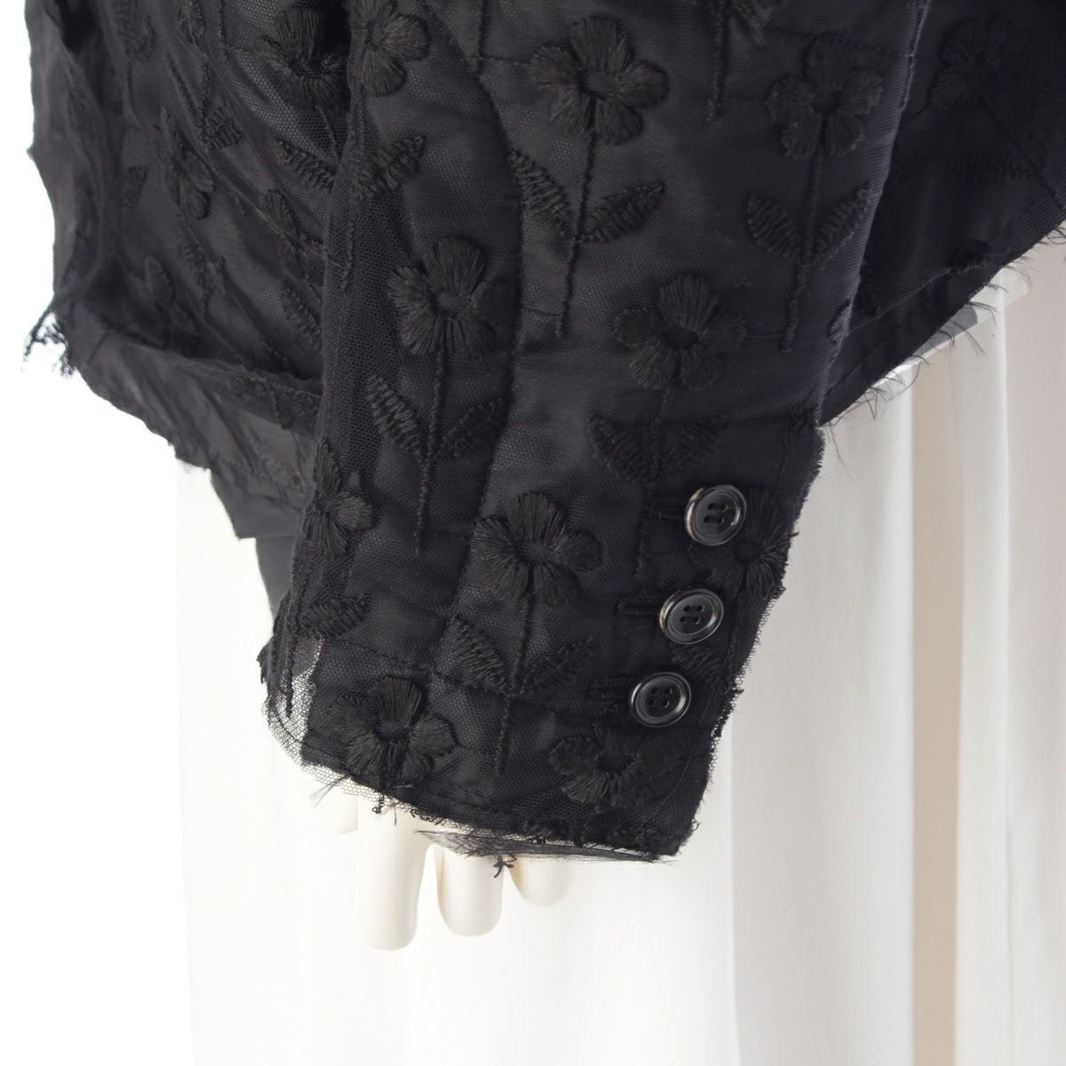 コムデギャルソン AD2017 ナイロン 総刺繍 断ち切り フリルデザイン 変形 テーラードジャケット GB-J001 ブラック XS