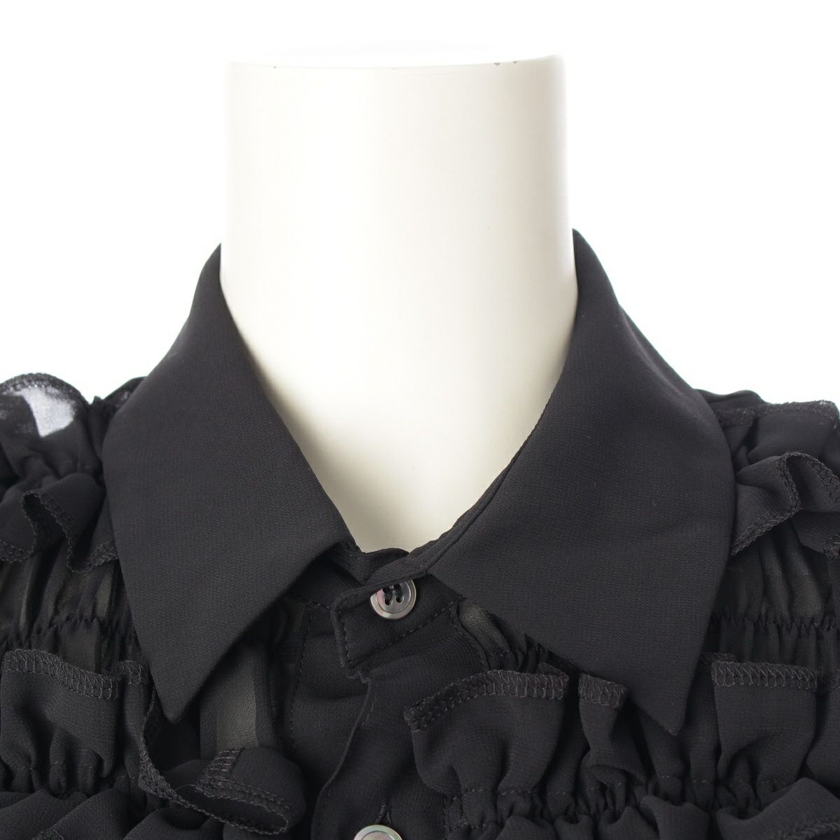 コムデギャルソン AD2016 16AW フリル チュール シースルー 半袖 ブラウス シャツ トップス GR-B014 ブラック S