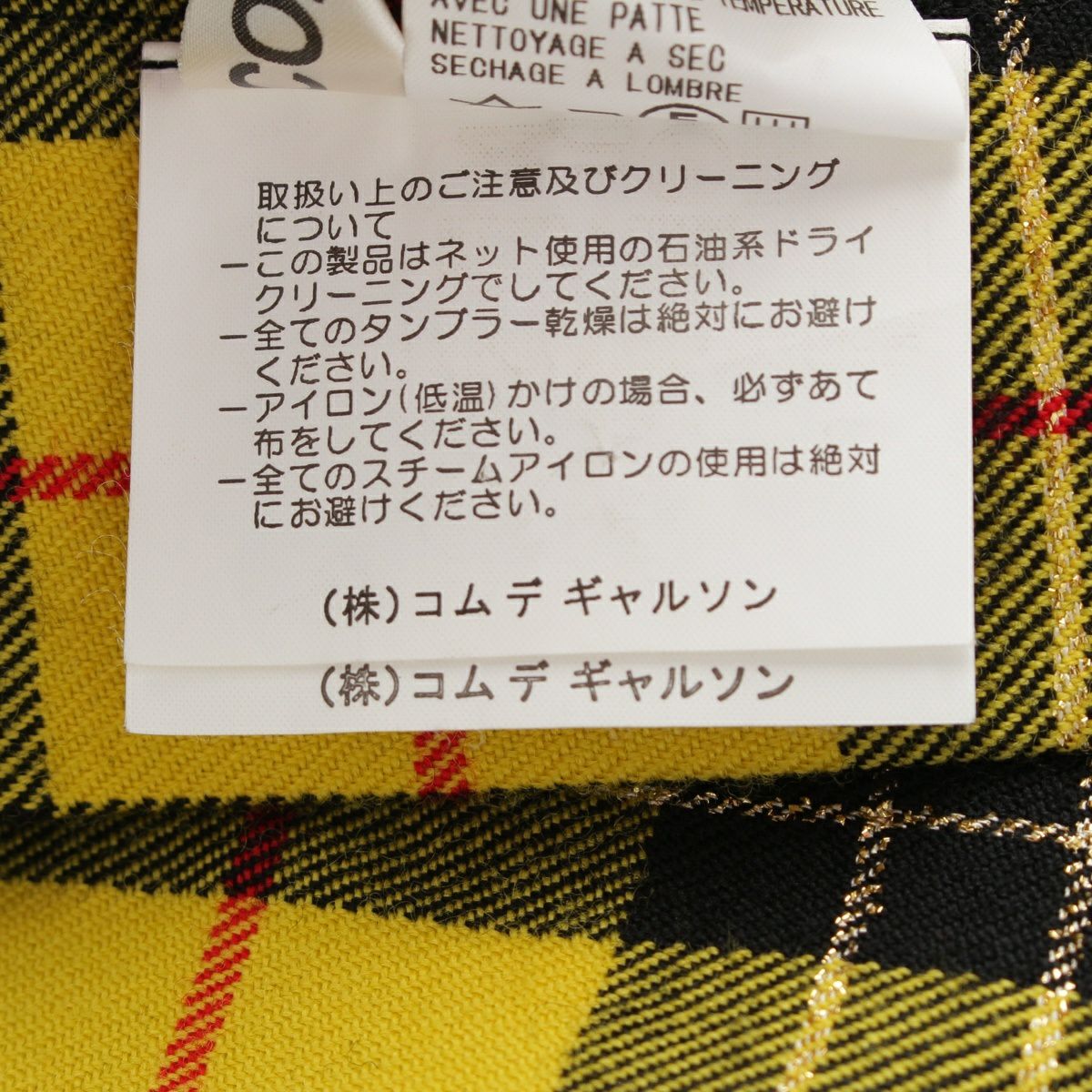 コムデギャルソン AD1999 チェック柄 変形 ポンチョ GP-04016S イエロー S